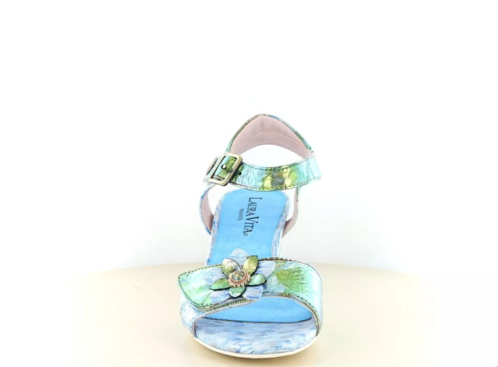 De Framboiseo 26 van Laura Vita is een opvallende dames sandaal die comfort en creativiteit perfect combineert. Deze uitvoering in de frisse kleur ciel straalt zomerse elegantie uit en is ideaal voor vrouwen die houden van een unieke, vrouwelijke look met oog voor detail.