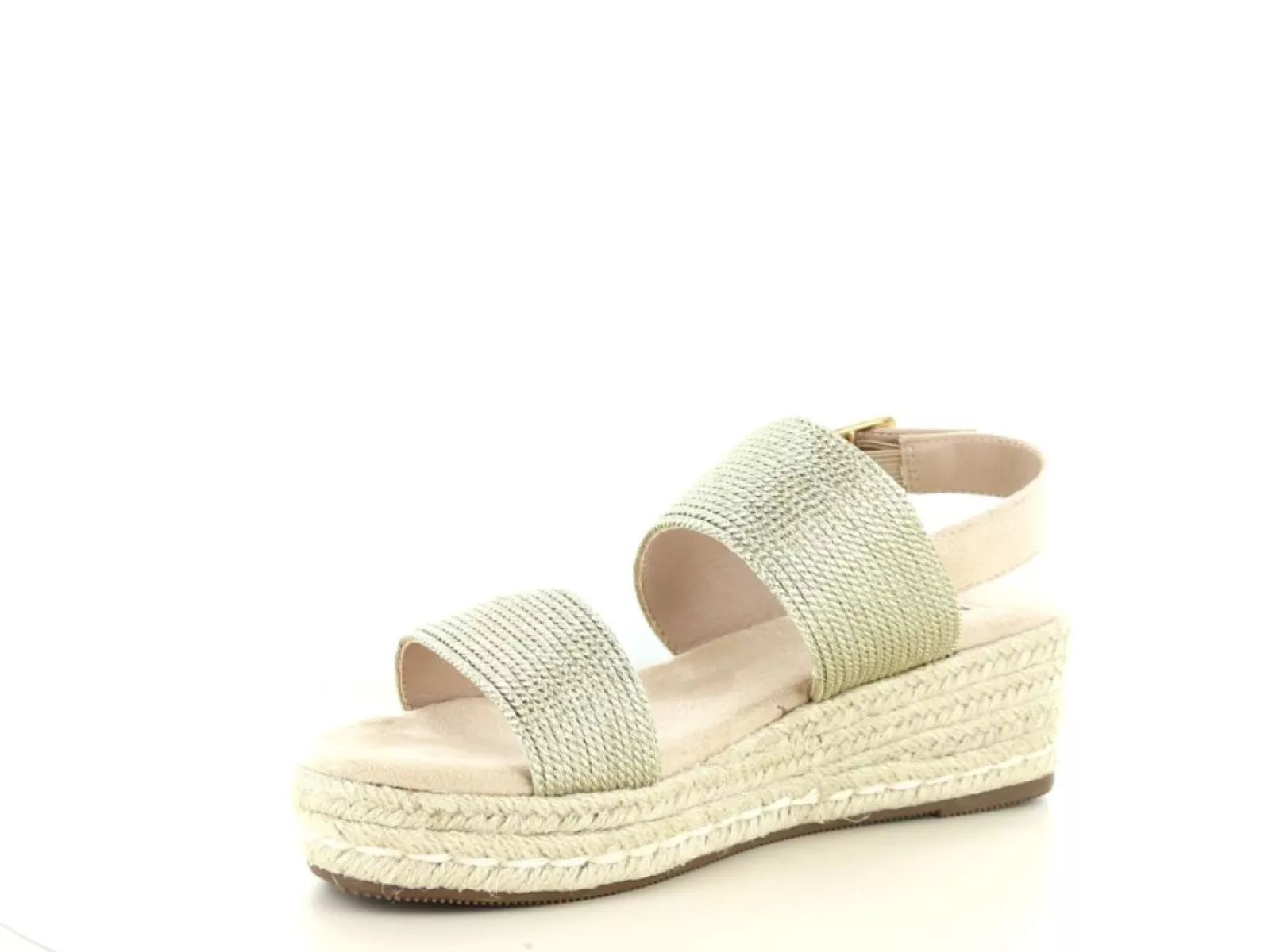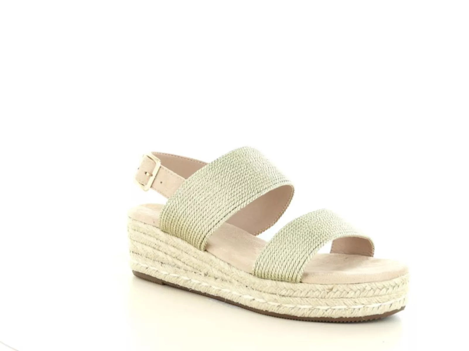 De C0047 sandaal van Posh by PS Poelman is een absolute must-have voor de zomer. Deze stijlvolle dames sandaal is uitgevoerd in een zachte, goudkleurige textiel met een subtiele glans. De brede banden over de wreef en voorvoet zorgen voor een modieuze look én stevige pasvorm.