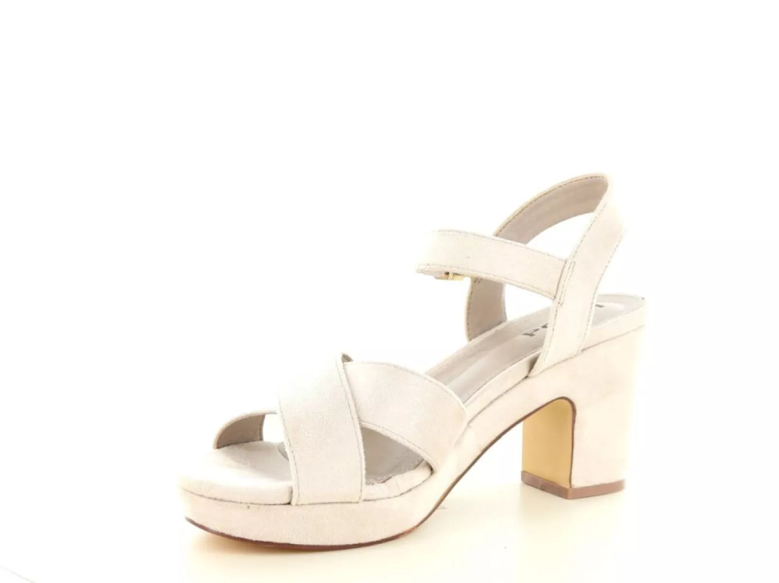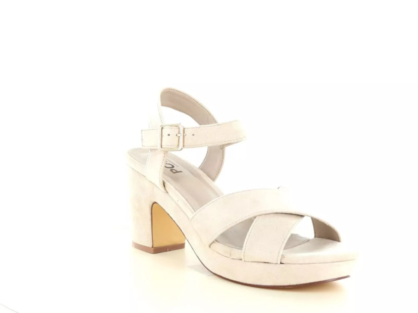Deze dames sandaal is uitgevoerd in synthetisch suède met een comfortabele blokhak die stabiliteit biedt, zelfs tijdens lange dagen. Dankzij de lichte plateauzool onder de voorvoet worden de drukpunten verminderd, wat zorgt voor een prettige pasvorm. De brede gekruiste banden over de wreef zorgen voor een elegante look en houden de voet stevig op z’n plaats.