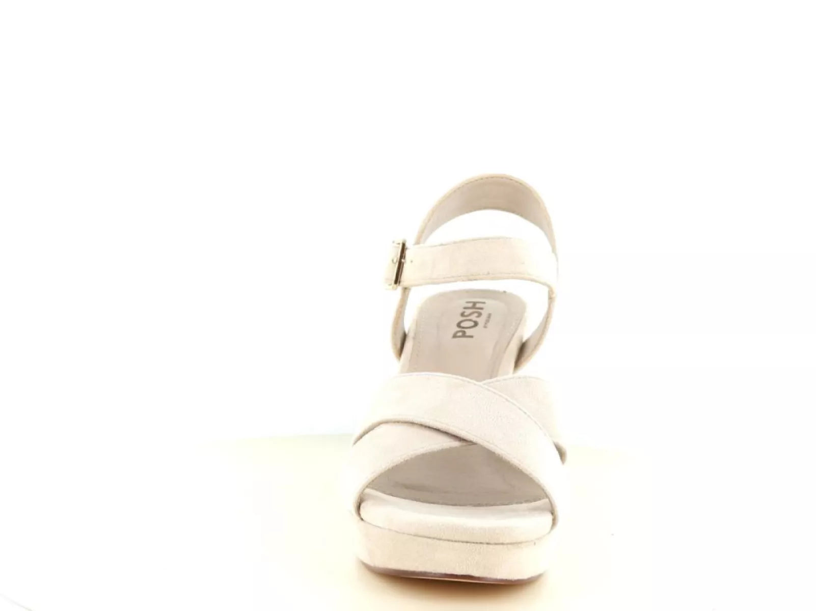 De C0047 sandaal met hak van Posh by PS Poelman is een perfecte mix van vrouwelijkheid, comfort en elegantie. De zachte taupekleur geeft deze schoen een stijlvolle en veelzijdige uitstraling – ideaal voor zowel een zomerse bruiloft als een diner op het terras.