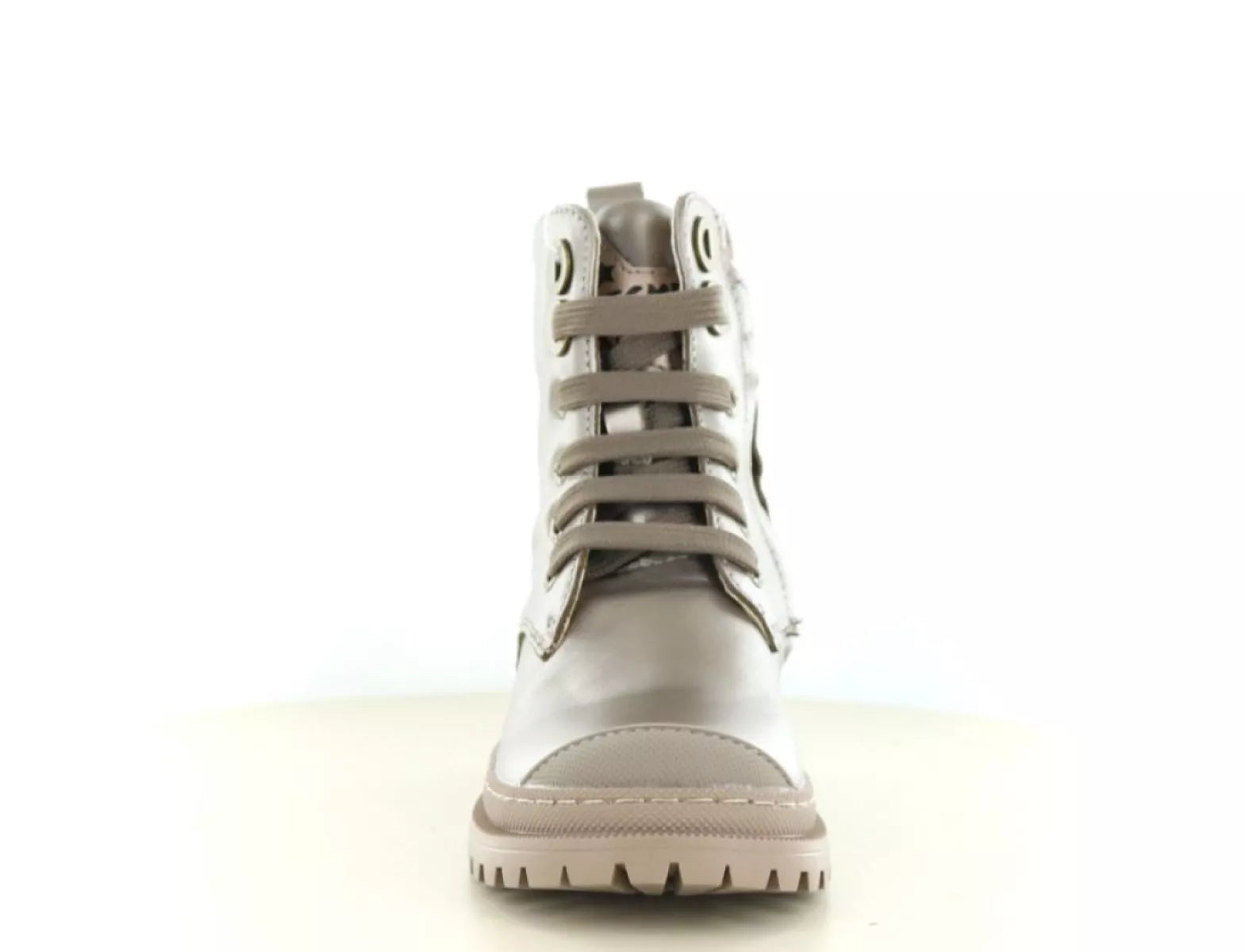De Shoesme NT24W007 Champagne Gold is een stoere én stijlvolle meisjes veterlaars die mode en functionaliteit perfect combineert. Uitgevoerd in hoogwaardig leer met een chique champagne-gouden metallic finish, is deze laars een echte eyecatcher. Dankzij de praktische ritssluiting trek je de laars eenvoudig aan en uit, terwijl de veters zorgen voor een perfecte pasvorm.