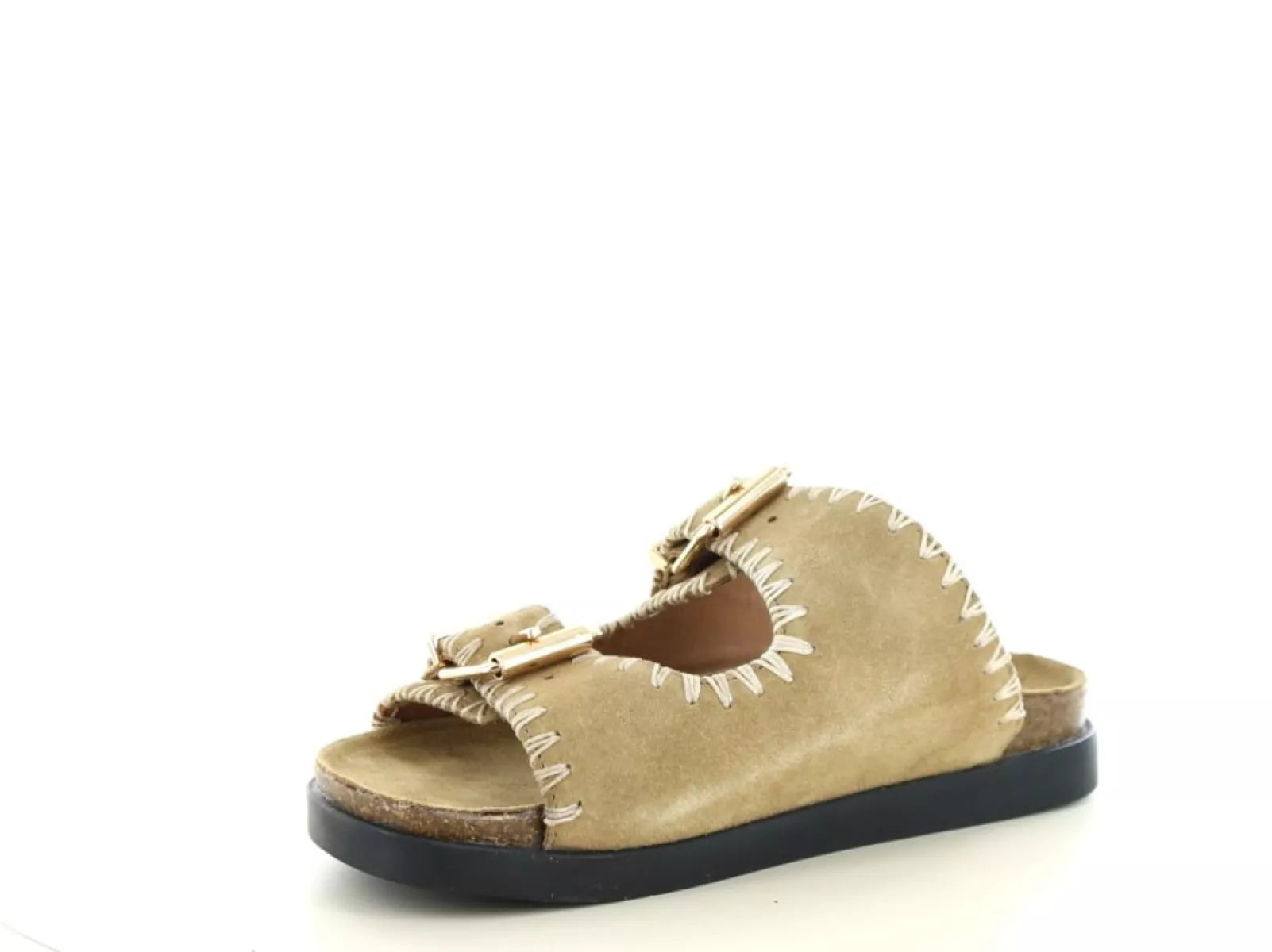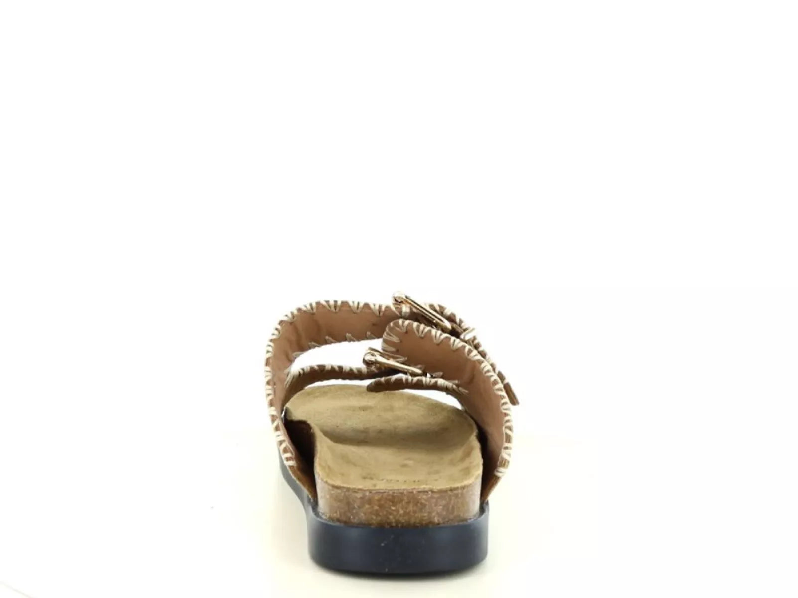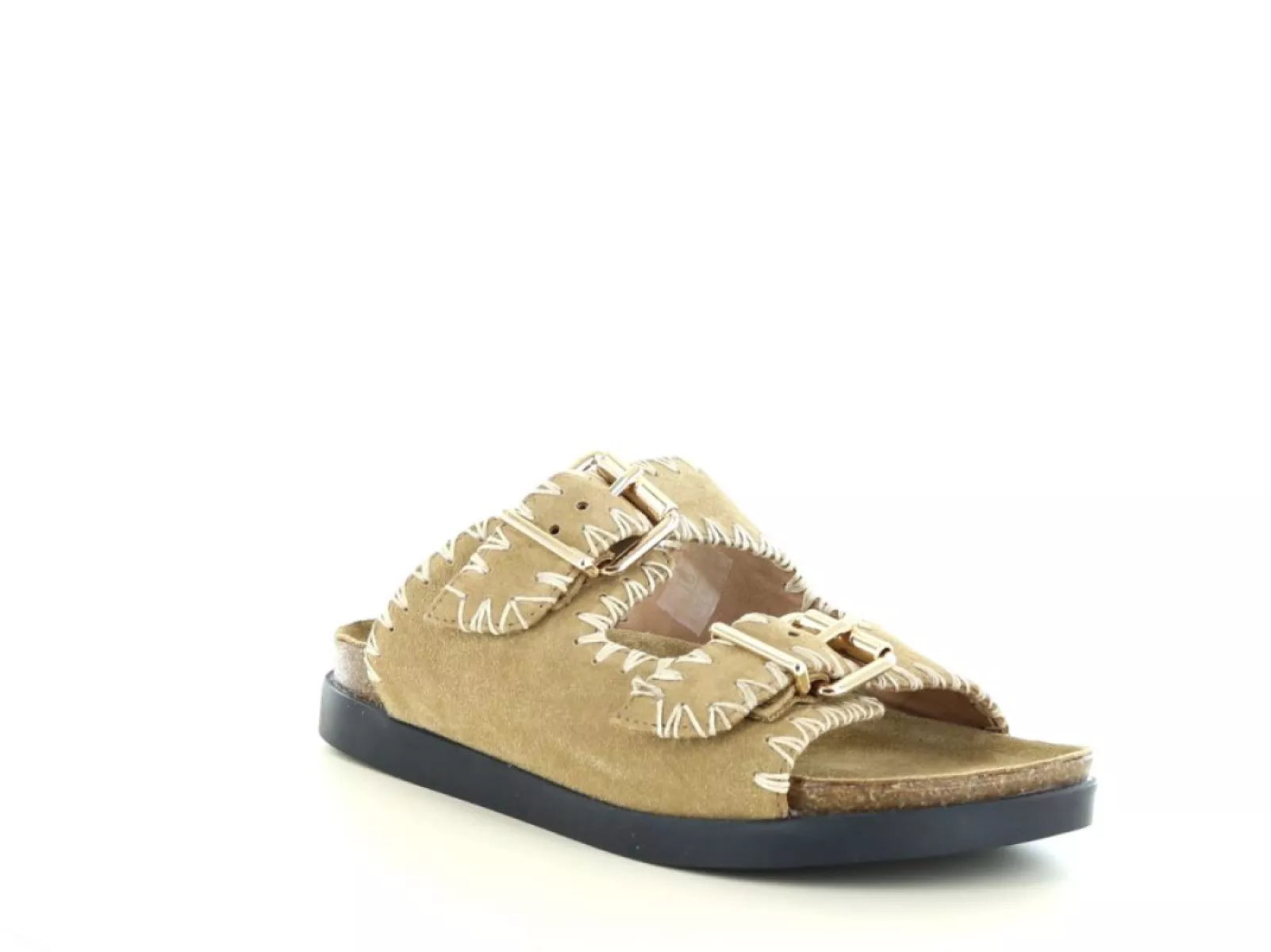 Dankzij de dubbele verstelbare gespbanden pas je de slipper eenvoudig aan naar jouw voet. Het voorgevormde voetbed biedt ondersteuning en maakt deze slipper geschikt voor langere dagen of zomerse wandelingen. De stevige zwarte zool zorgt voor goede grip én een stijlvol contrast met het lichte bovenwerk.