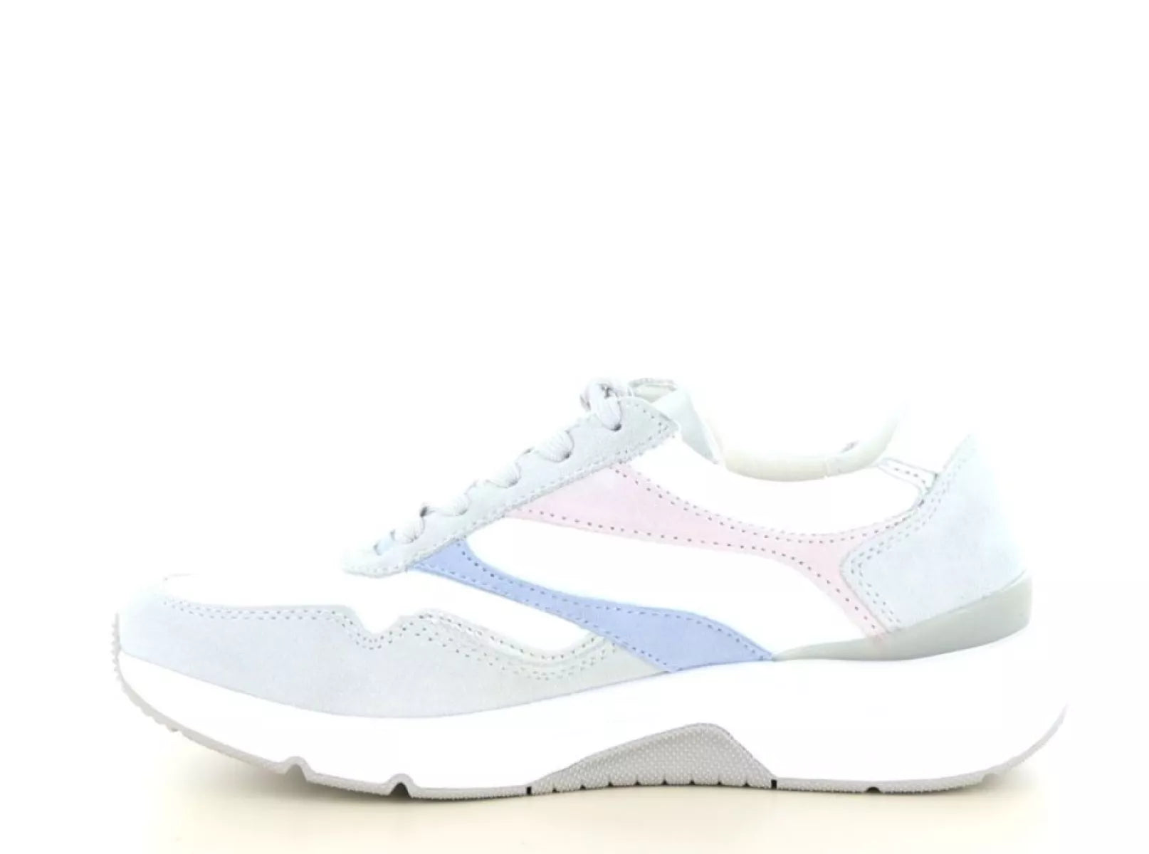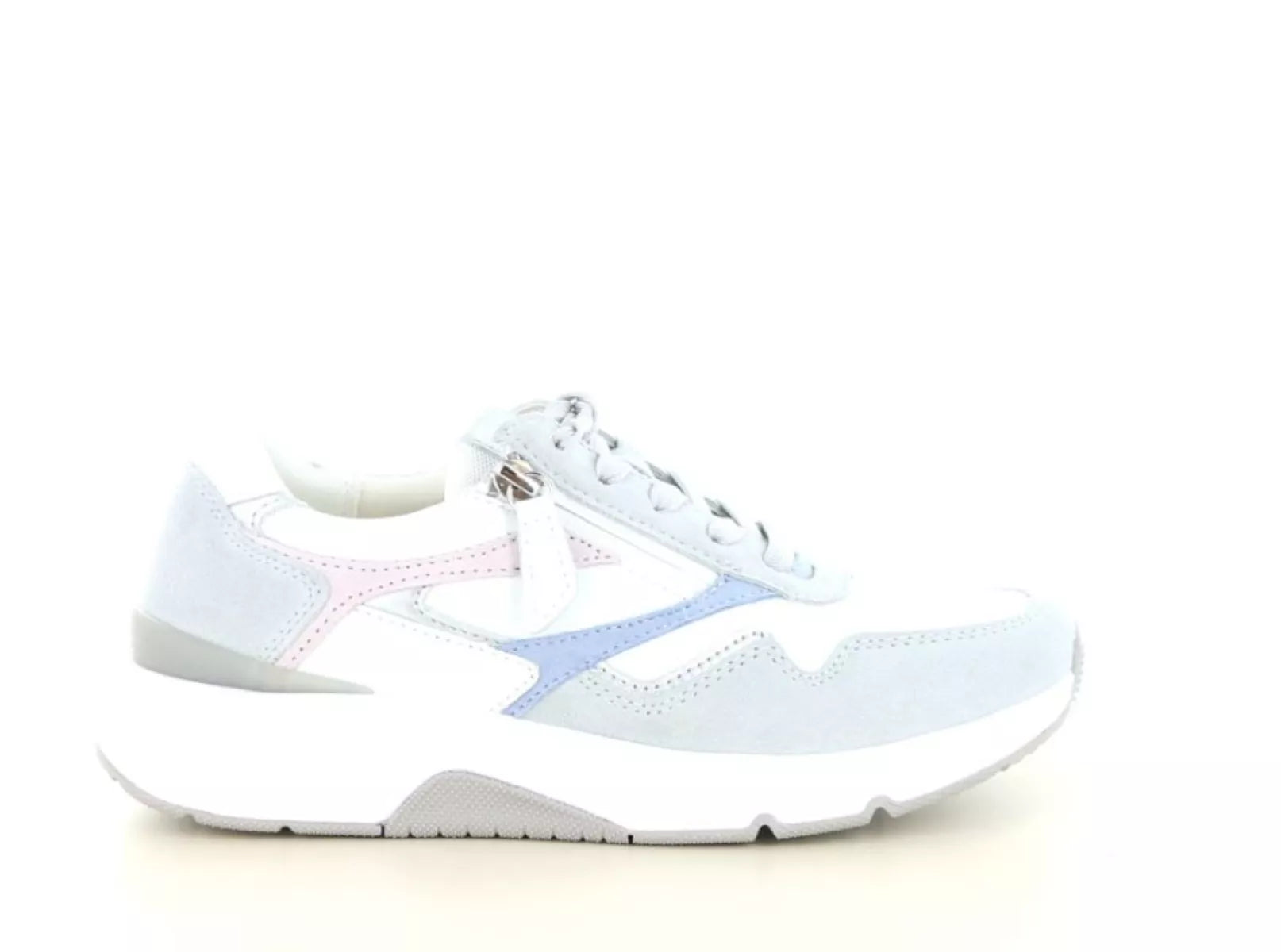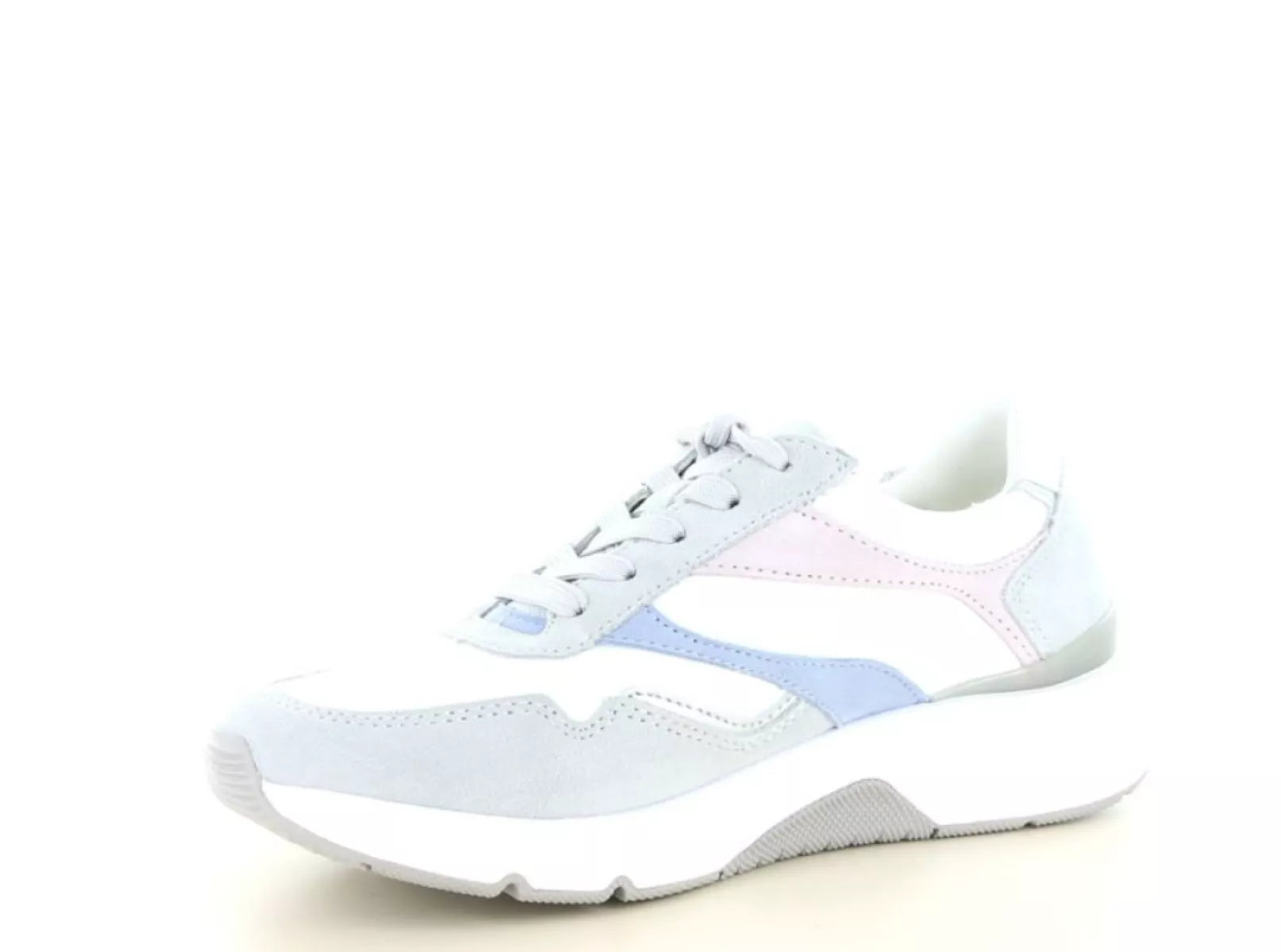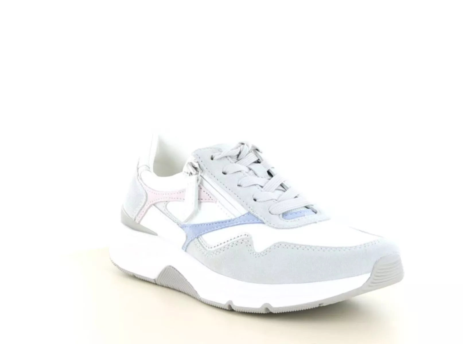 De Gabor Rolling Soft 86.896 sneaker is een ideale keuze voor dames die stijl willen combineren met optimaal loopcomfort. Deze sportieve sneaker is uitgevoerd in hoogwaardig leer en heeft een moderne kleurcombinatie van wit, grijs en zachte pasteltinten. Hierdoor is de schoen eenvoudig te combineren met zowel casual als sportieve outfits.