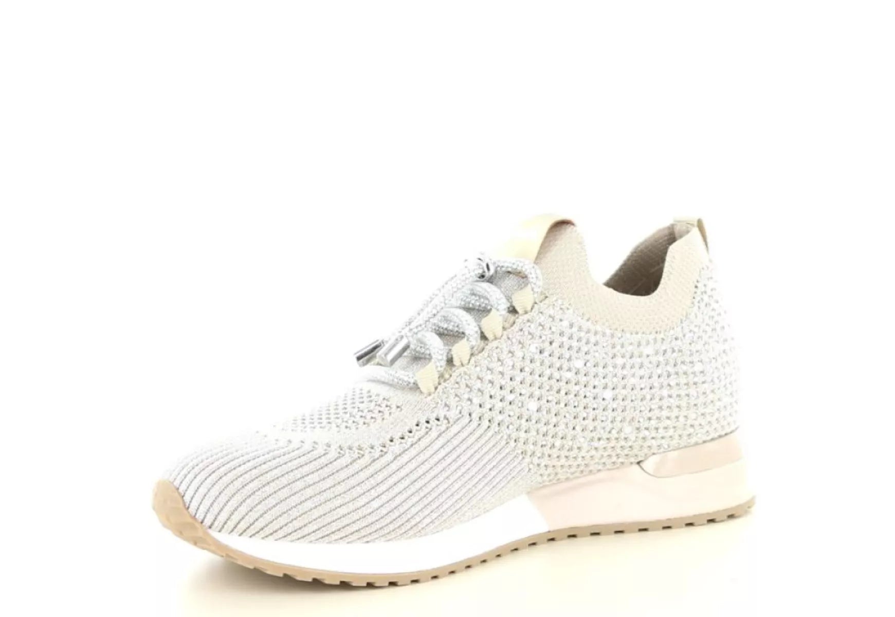 De La Strada 2400409 in de kleur 4522 beige/silver is een modieuze dames instap sneaker die comfort en stijl moeiteloos combineert. De zachte beige basis met subtiele zilverkleurige accenten geeft deze sneaker een frisse, luxe uitstraling die perfect past bij zowel casual als sportief-chique outfits.