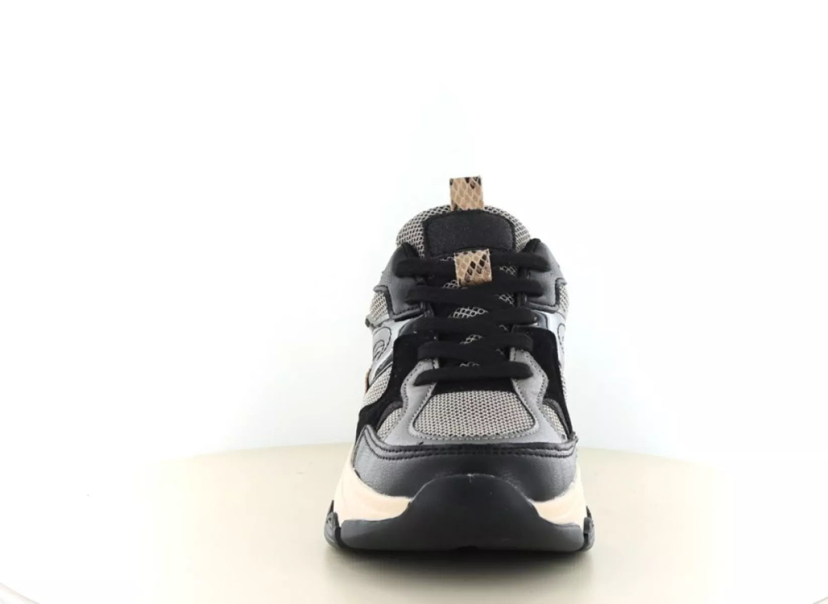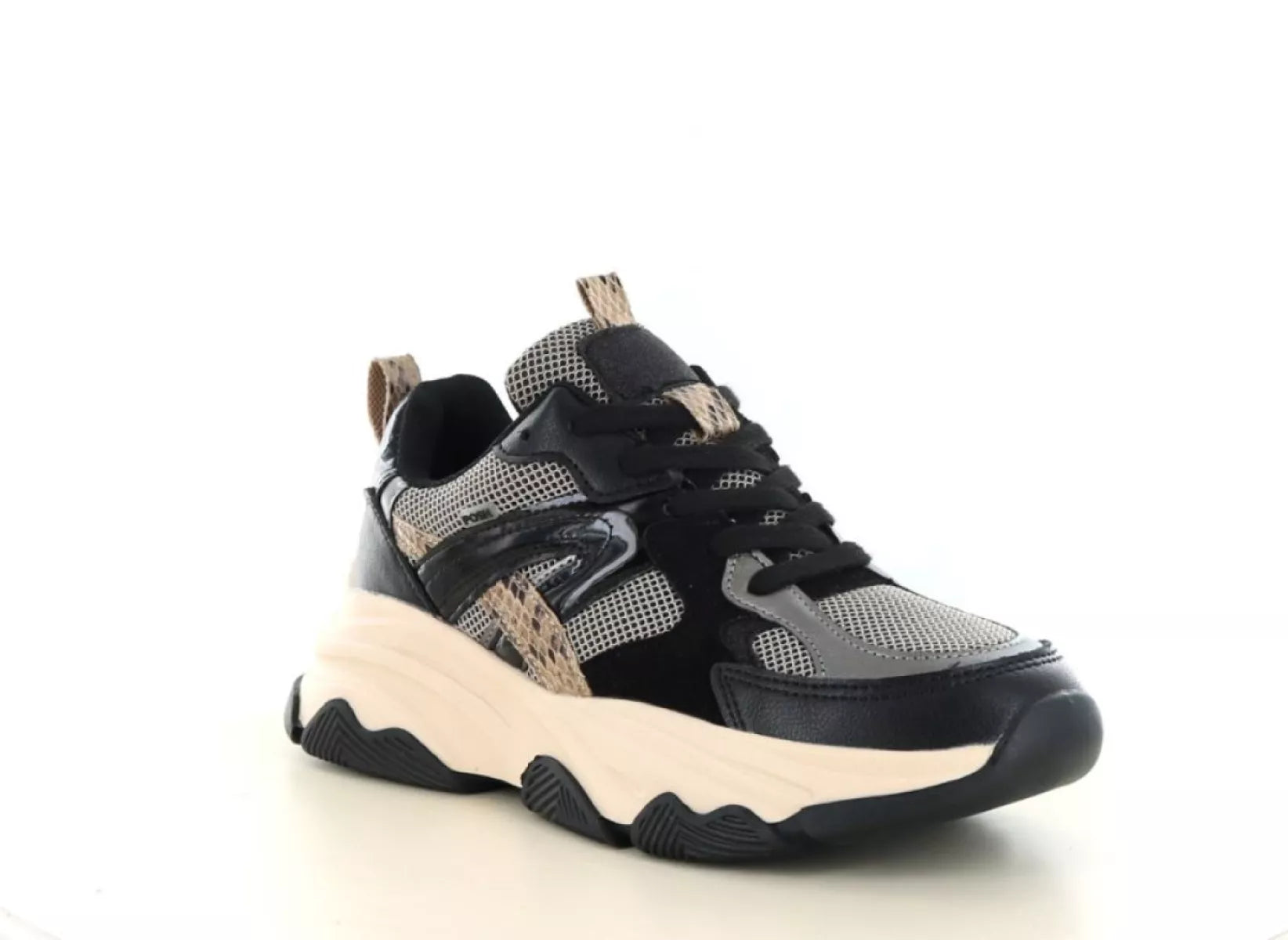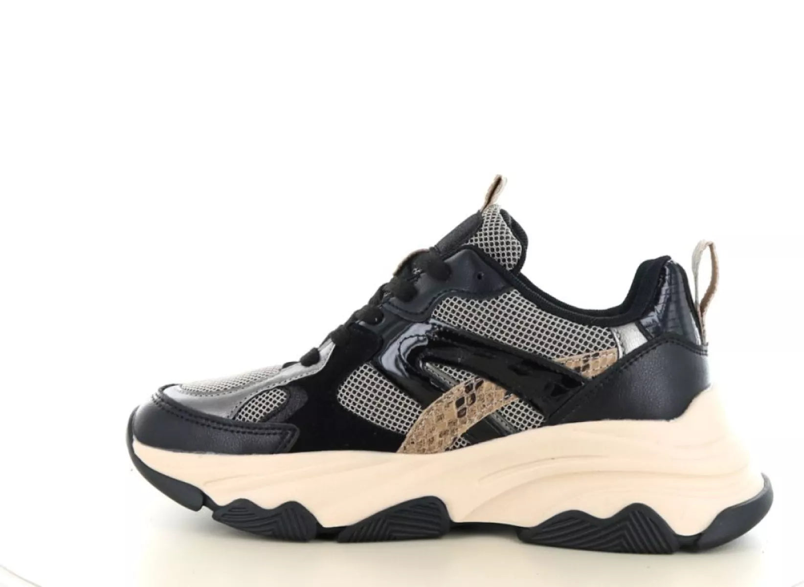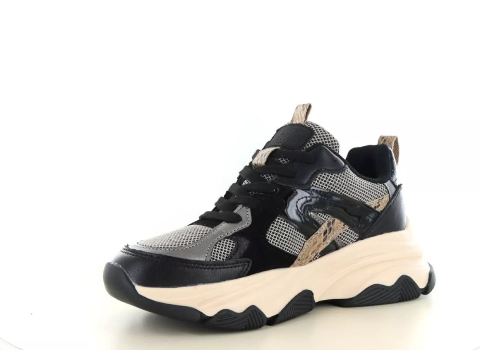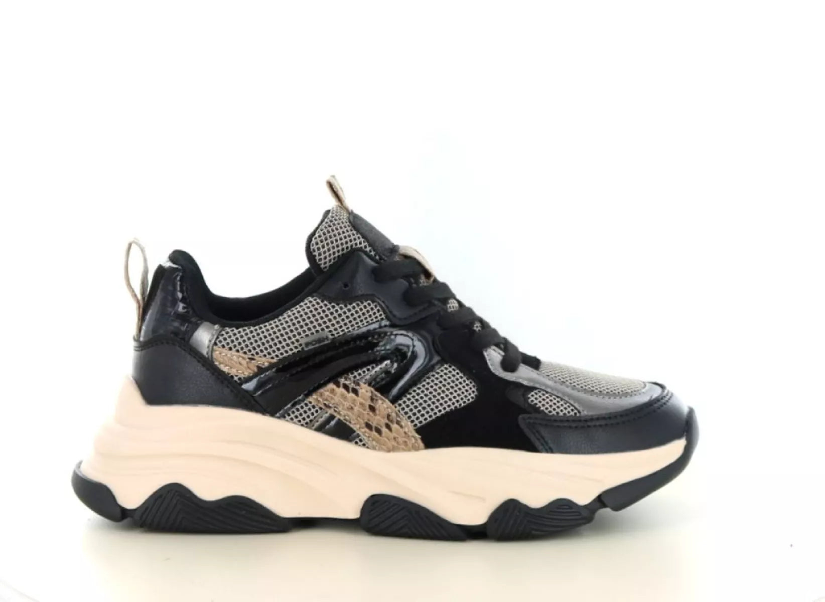 De Posh by PS Poelman Gigi sneaker in zwart is dé perfecte schoen voor dames die mode en comfort willen combineren. Deze stoere chunky sneaker heeft een eigentijdse look dankzij de combinatie van zwart synthetisch leer, mesh en subtiele snake print details. Het resultaat is een sportieve, maar toch vrouwelijke sneaker die je outfit direct een trendy boost geeft.
