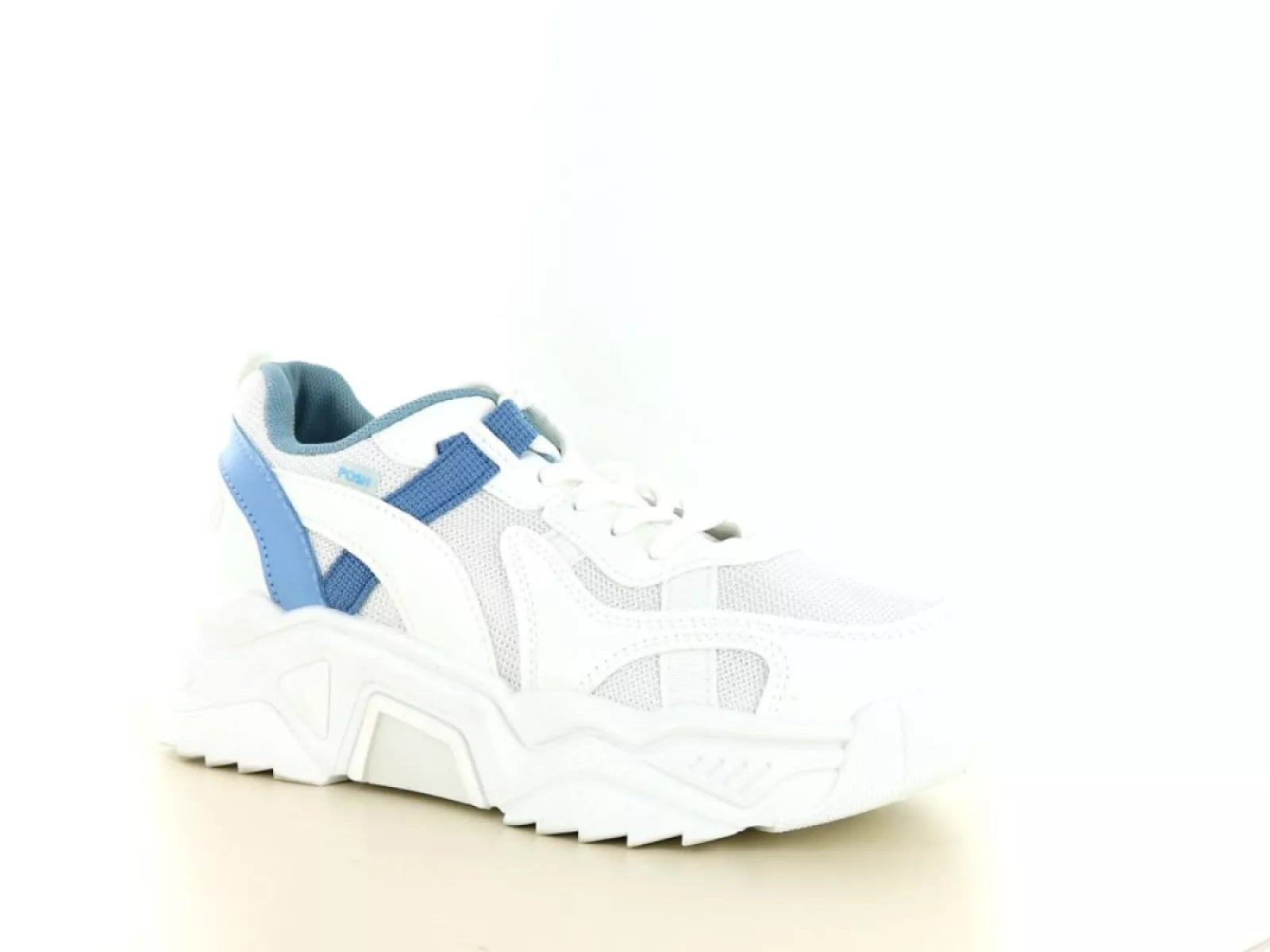 De CSUMI sneaker van Posh by PS Poelman is een elegante keuze voor dames die op zoek zijn naar zowel stijl als comfort. Gemaakt van hoogwaardig synthetisch materiaal, straalt deze sneaker in de kleur wit/lichtblauw moderniteit uit. De sluiting met veters zorgt voor een stevige pasvorm, terwijl het ontwerp toch moeiteloos aan en uit te trekken is.