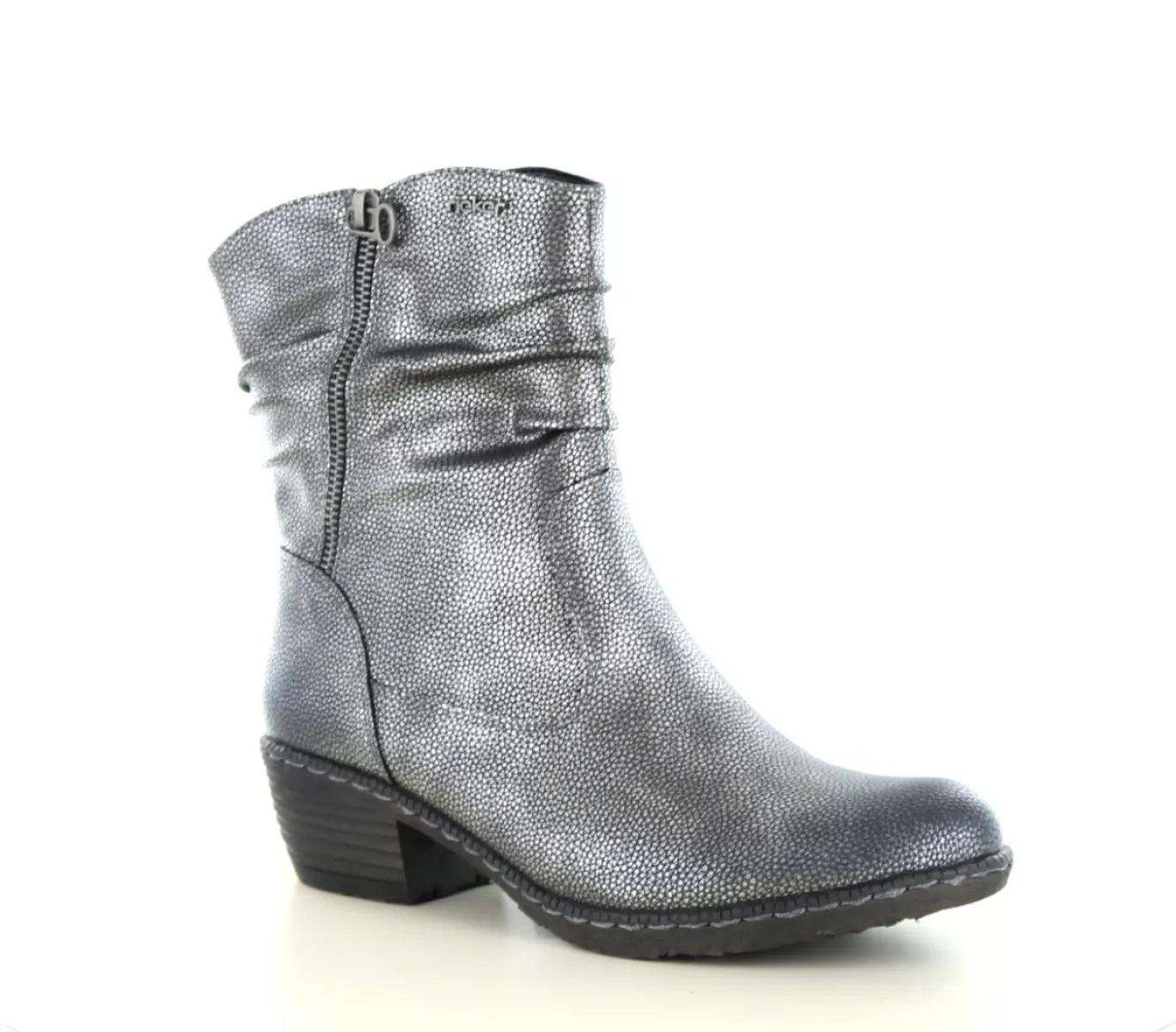 Rieker 93760 – Comfortabele zilverkleurige dames enkellaars