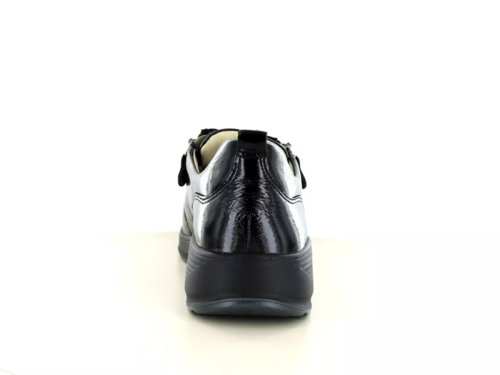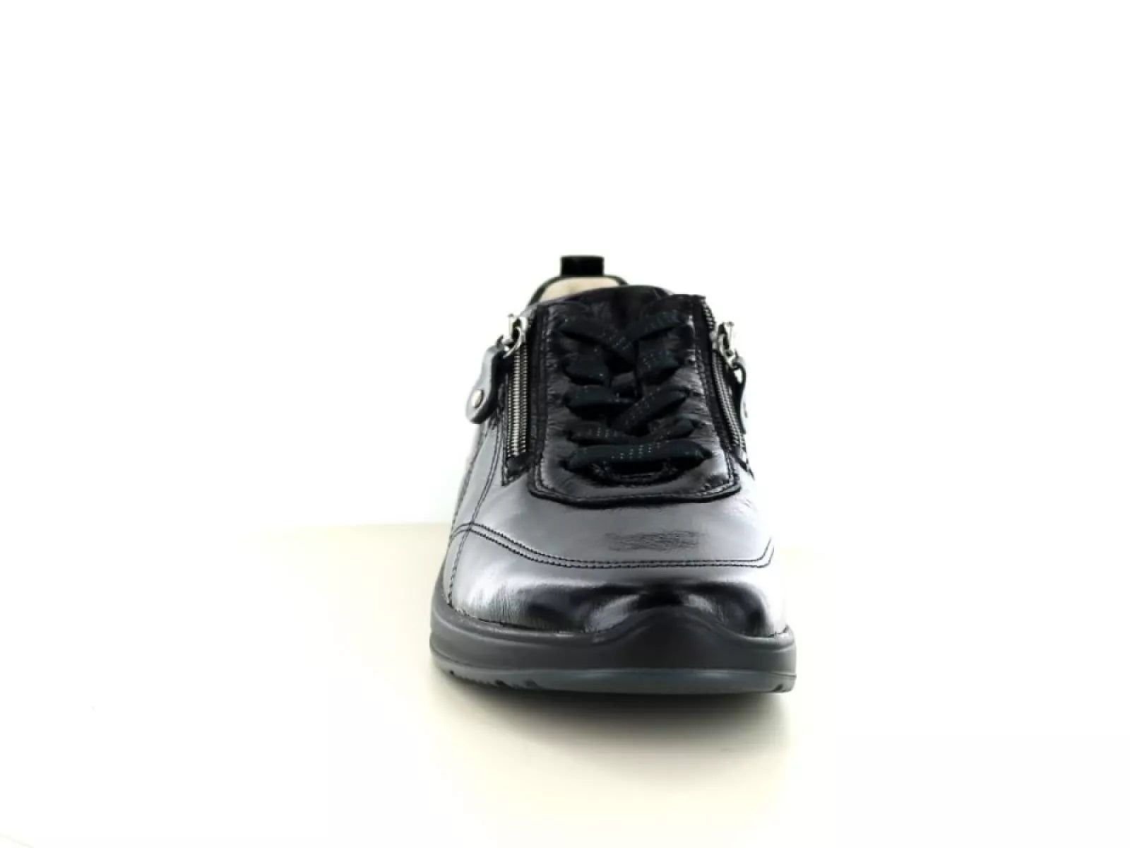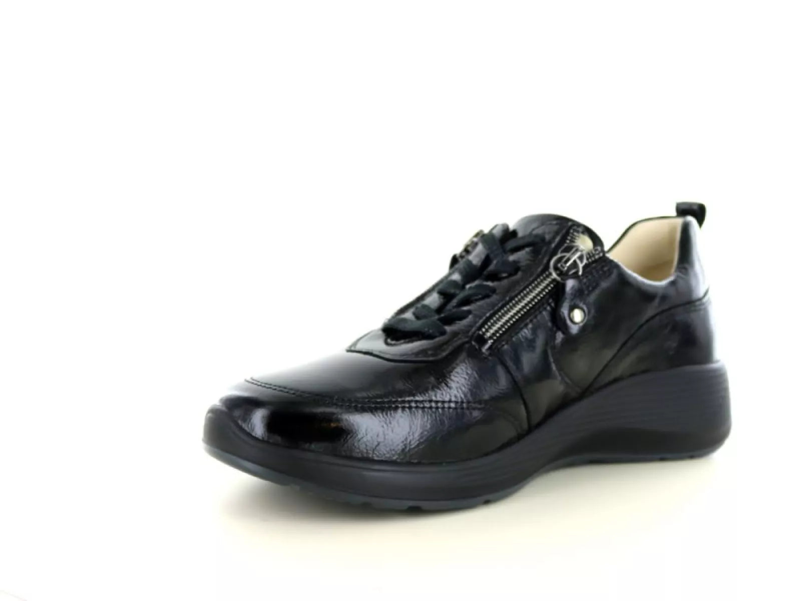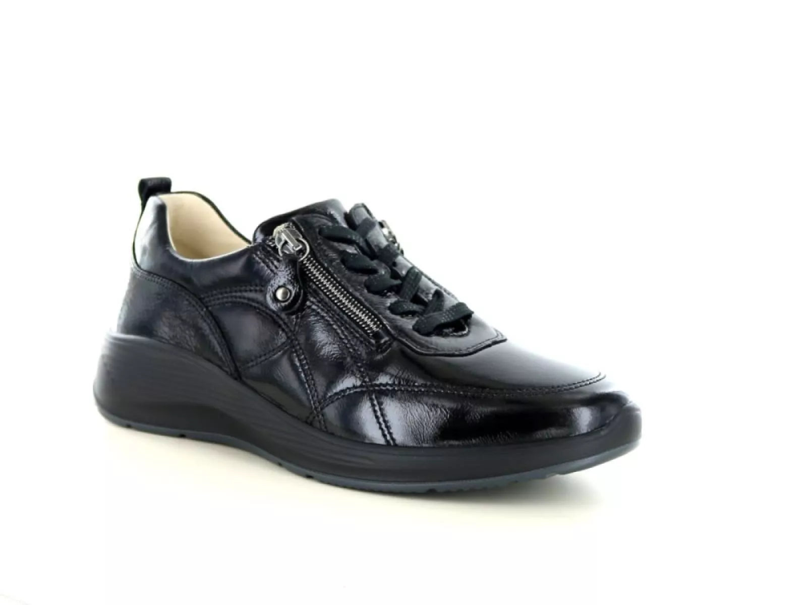 De 698001 wijdte K van Waldlaufer is een mooie veterschoen gemaakt van leer [lak], voor dames. Deze schoen heeft een verwisselbaar voetbed en is geschikt voor steunzolen. Deze veterschoen is uitgevoerd in de kleur 143 001 zwart en is gemaakt op wijdte K [extra breed]. De sluiting is door middel van een rits en veters.