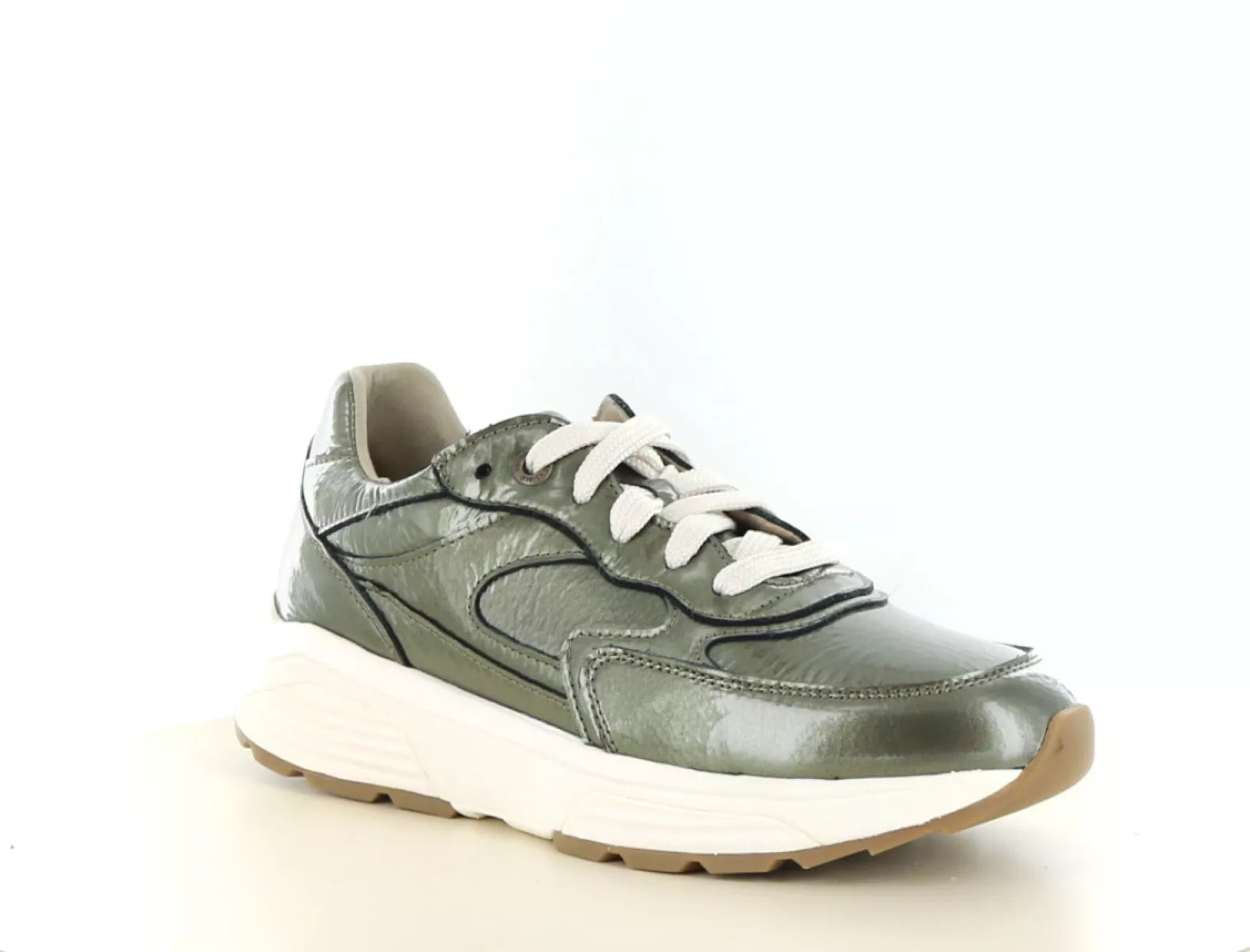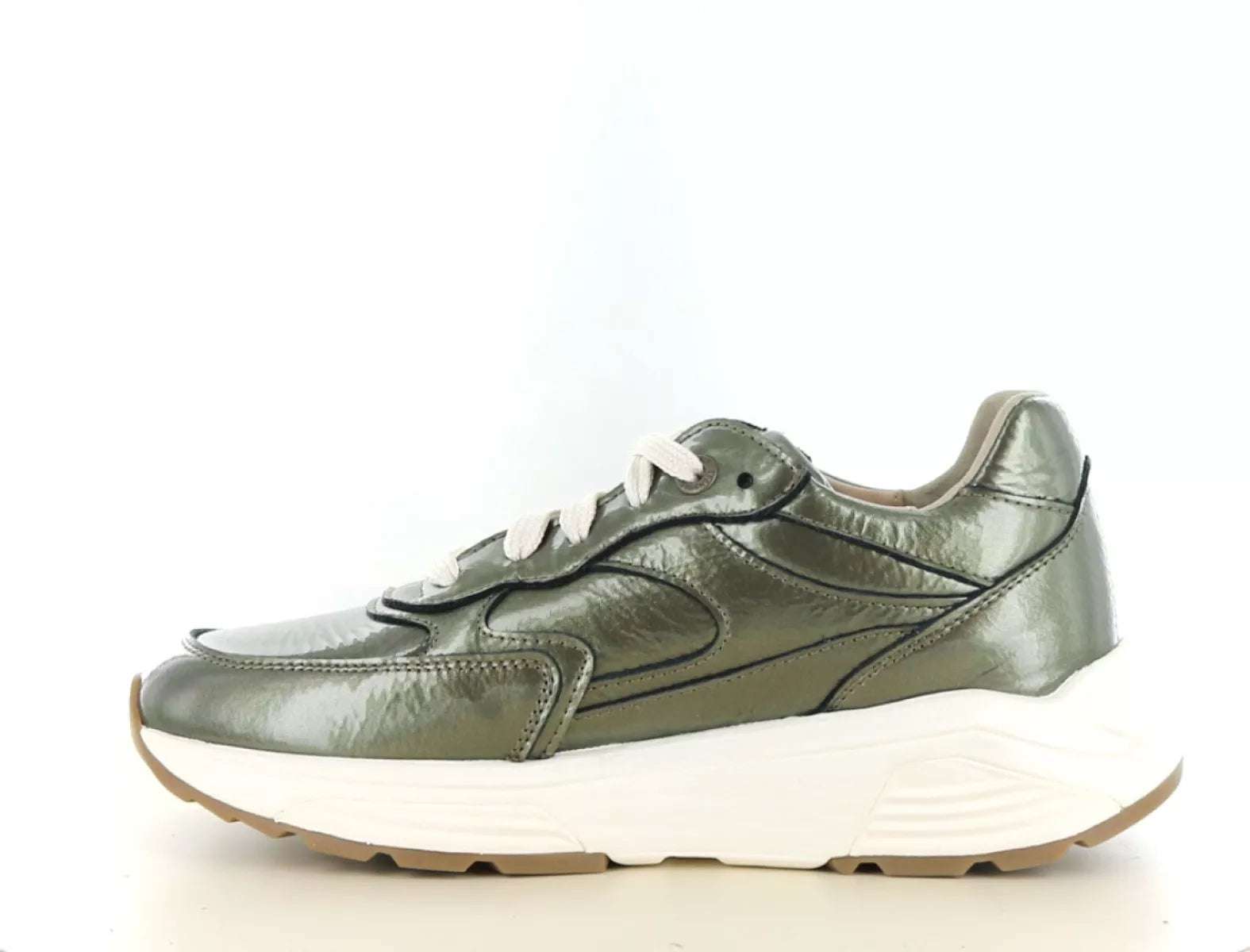 - Modieuze sneaker van hoogwaardig lakleer in uniek mosgroen