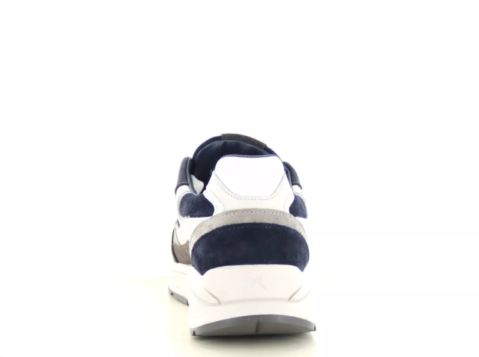 De uitneembare zool maakt het mogelijk om je eigen steunzolen te gebruiken, wat deze schoen ideaal maakt voor dragers met voetklachten zoals hielspoor of peesplaatontsteking. De sportieve uitstraling met contrasterende kleuren – donkerblauw, grijs en wit – geeft de sneaker een eigentijdse look die perfect past bij zowel casual als sportieve outfits.