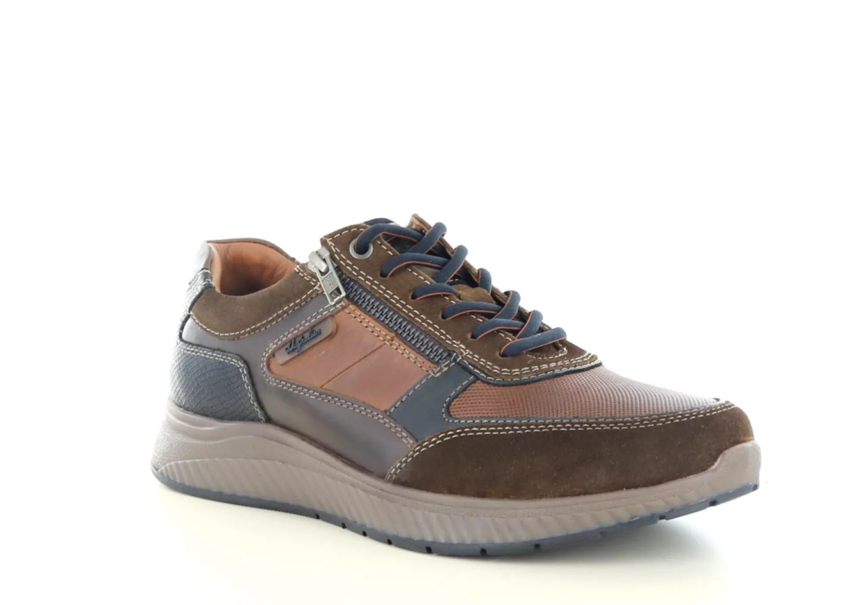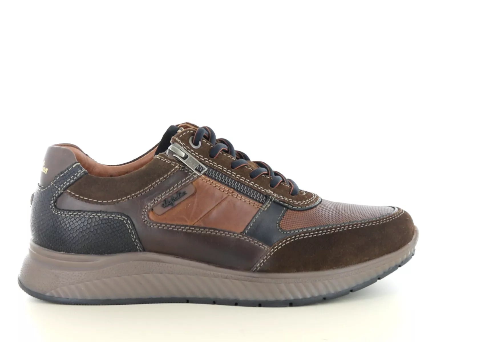 De Australian Maurizio is een veelzijdige leren veterschoen die stijl en comfort combineert in een sportief design. Dankzij de kleurenmix van cognac, bruin en zwart heeft deze schoen een eigentijdse uitstraling die eenvoudig te combineren is met zowel casual als nette outfits.