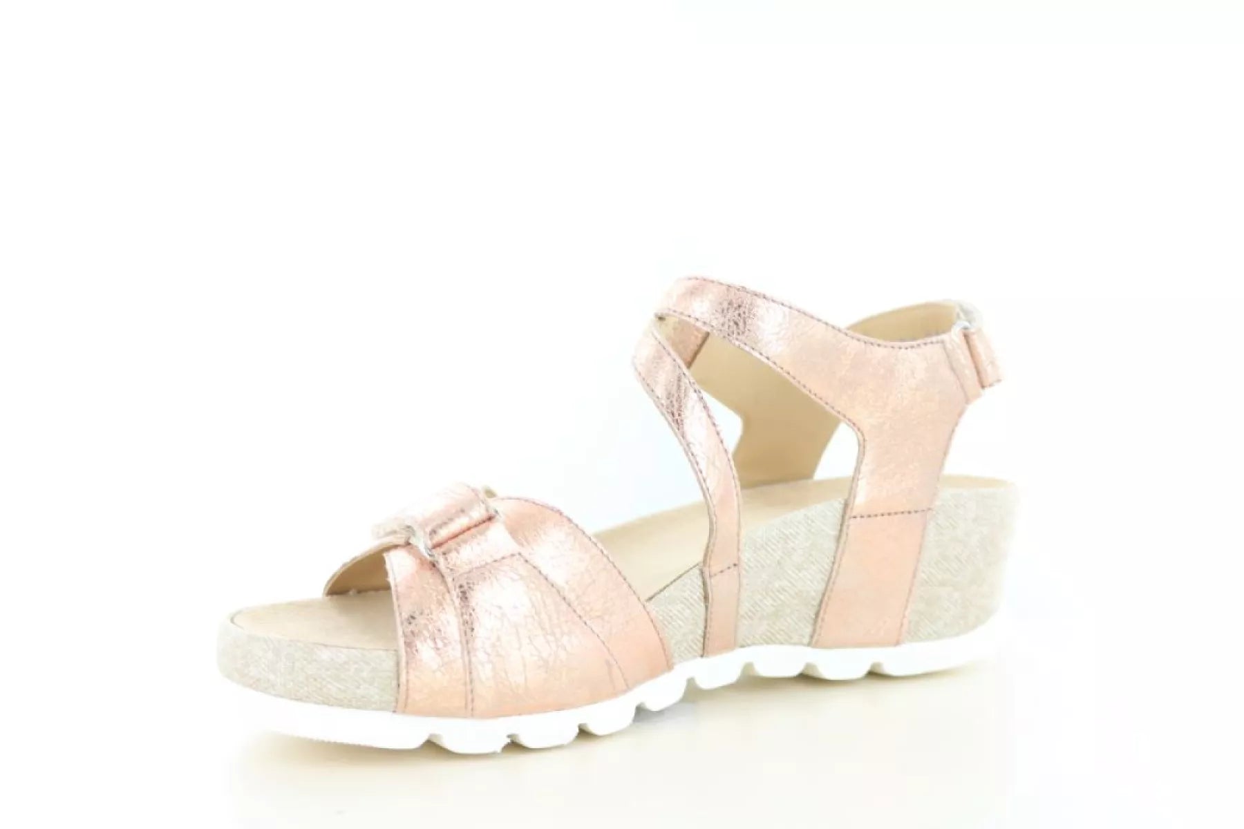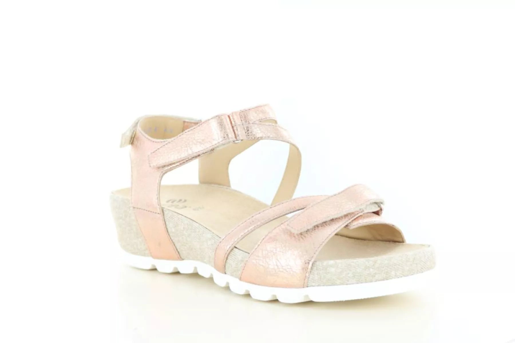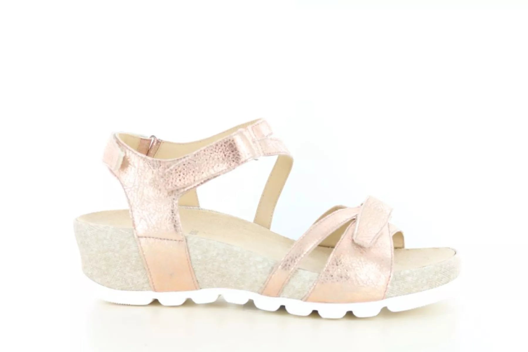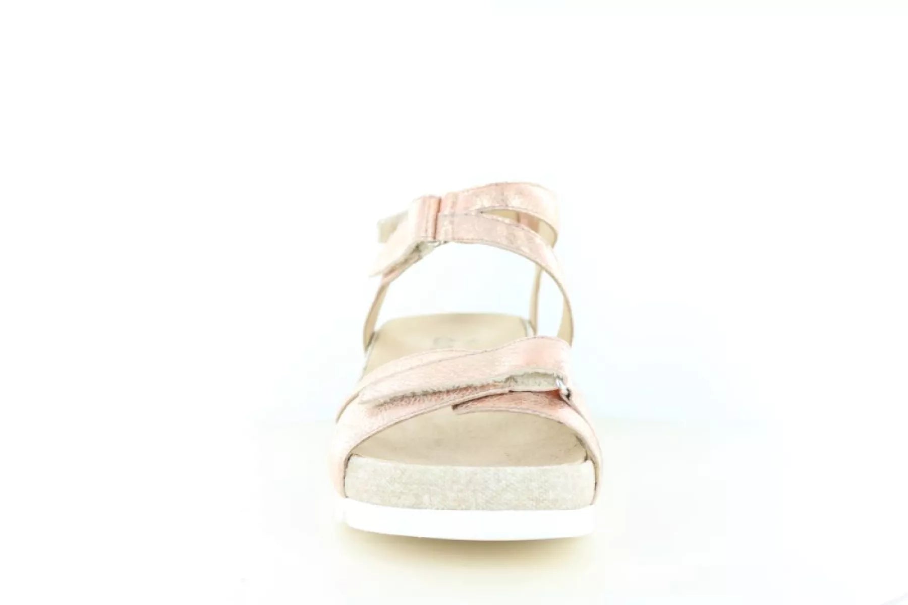 Het bovenwerk is gemaakt van zacht suède en uitgevoerd in een elegante rame kleur (1473) met een subtiele roségouden uitstraling. Deze warme tint geeft de sandaal een stijlvolle en moderne look, terwijl hij tegelijkertijd gemakkelijk te combineren is met verschillende zomerse outfits.