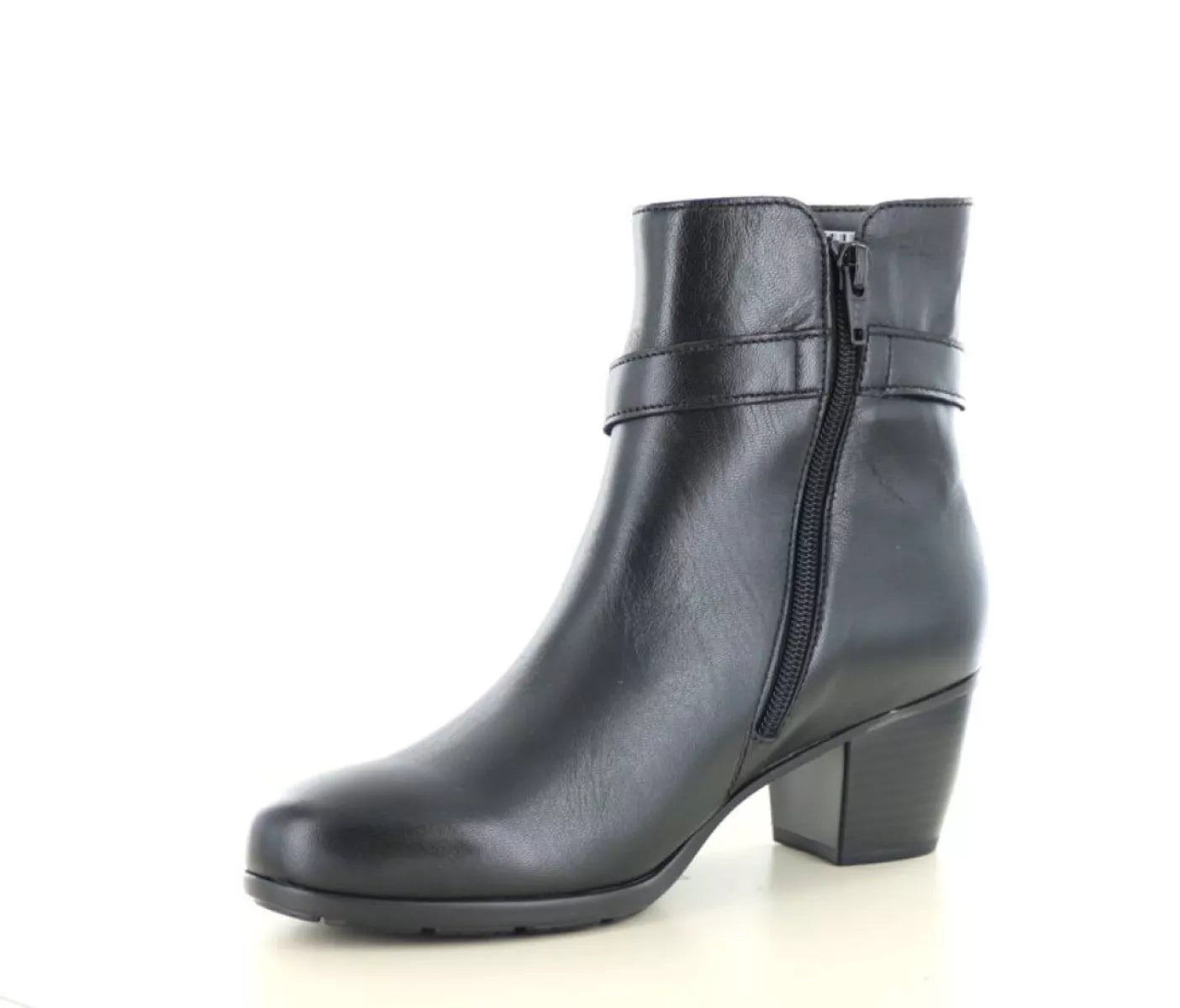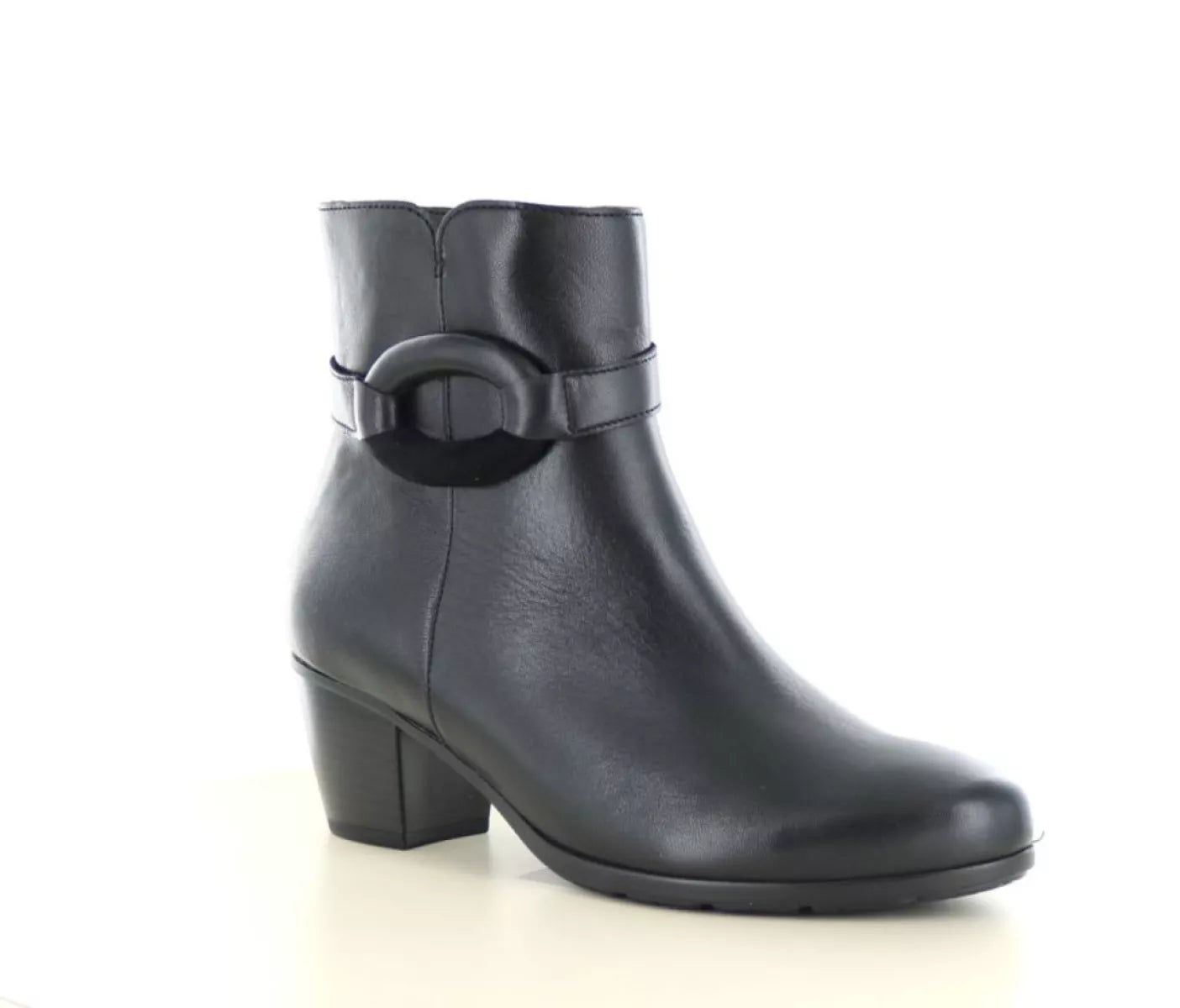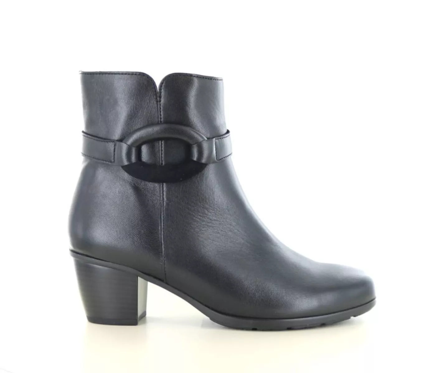 De Gabor 75.523 in zwart is een stijlvolle leren enkellaars die elegantie en comfort perfect weet te combineren. Dit damesmodel straalt klasse uit dankzij het minimalistische design en de subtiele siergesp op de enkelband, wat zorgt voor een verfijnde finishing touch.