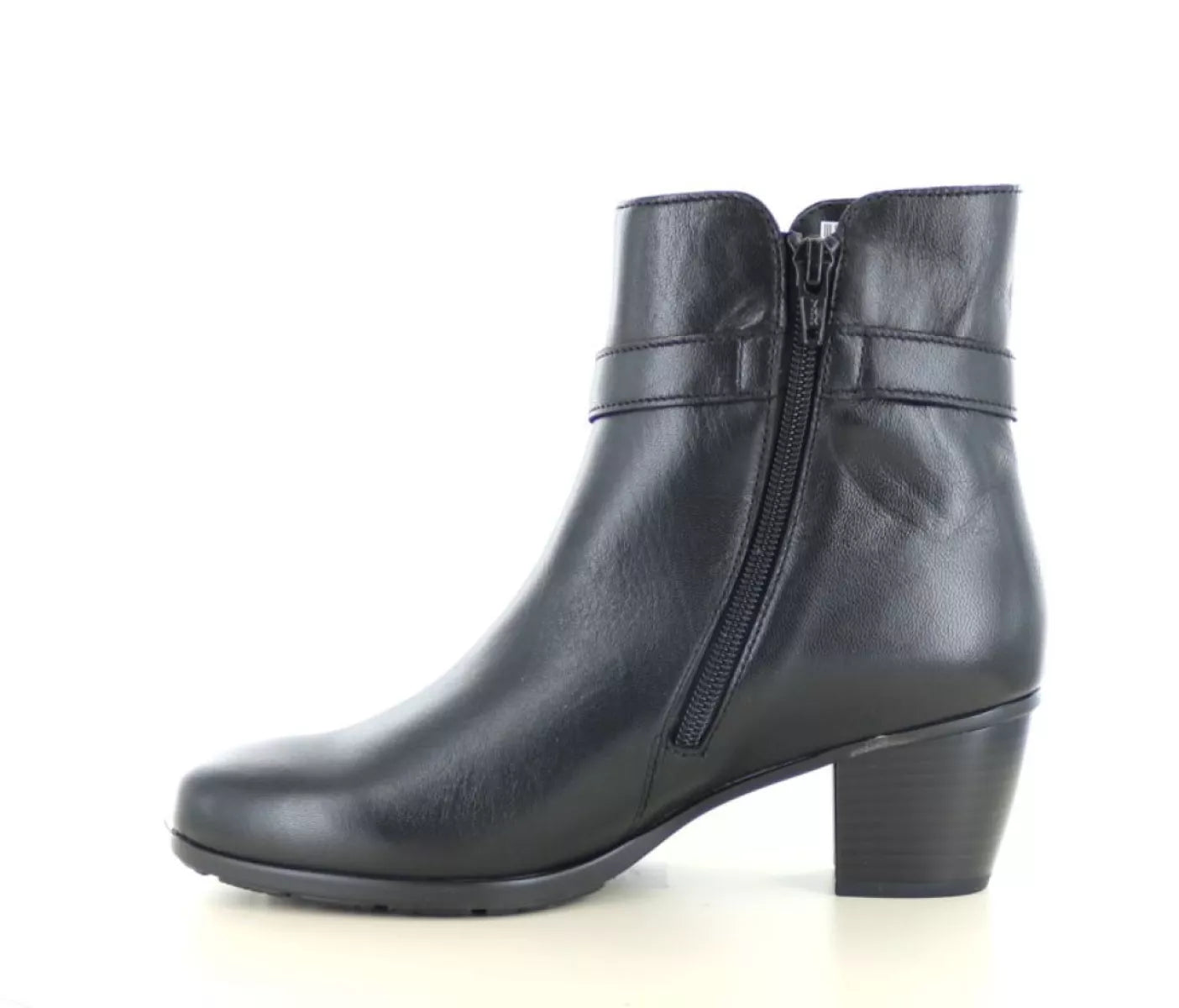 Deze laars is uitgevoerd in soepel zwart leer en heeft een normale pasvorm (wijdtemaat F 1/2), waardoor hij mooi aansluit rond de voet. De ritssluiting aan de binnenzijde zorgt ervoor dat je de laars eenvoudig aan- en uittrekt – handig voor dagelijks gebruik.