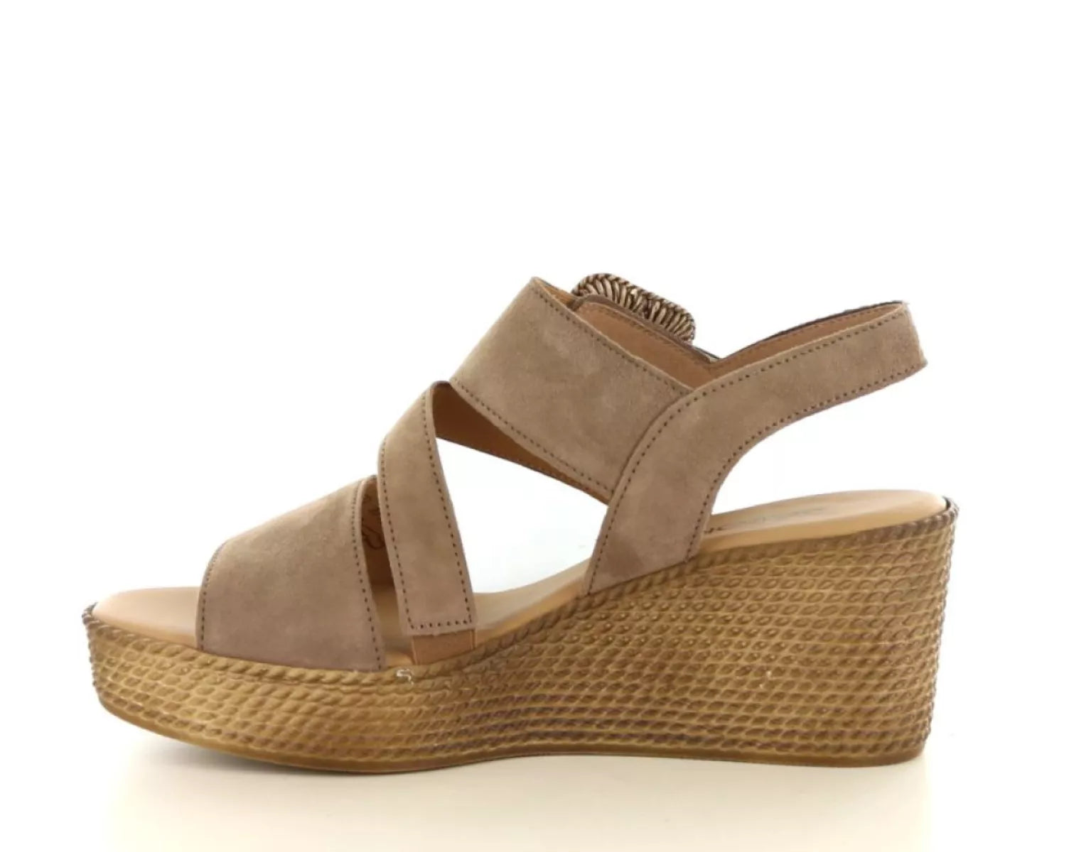 De Gabor 84.771 wijdte F ½ is een stijlvolle dames sandaal met sleehak die elegantie en comfort moeiteloos combineert. Dit model is uitgevoerd in zacht suède leer in de warme kleur 14 peanut, een veelzijdige neutrale tint die prachtig combineert met zowel lichte als donkere zomerkleding.