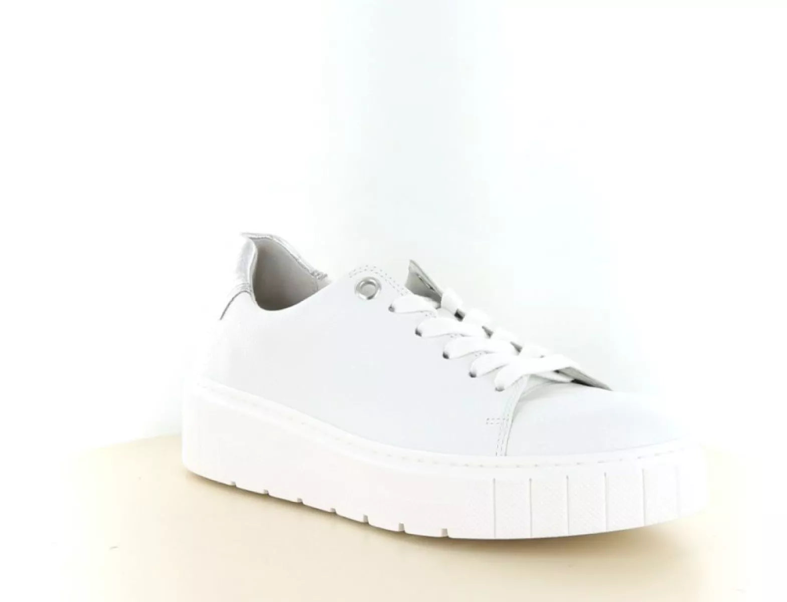 De Gabor 86.410 dames sneaker in weiss/silver is een perfecte keuze voor vrouwen die comfort, kwaliteit en een moderne uitstraling willen combineren. Deze stijlvolle veterschoen is uitgevoerd in hoogwaardig leer en afgewerkt met subtiele zilverkleurige details, wat zorgt voor een frisse en eigentijdse look.