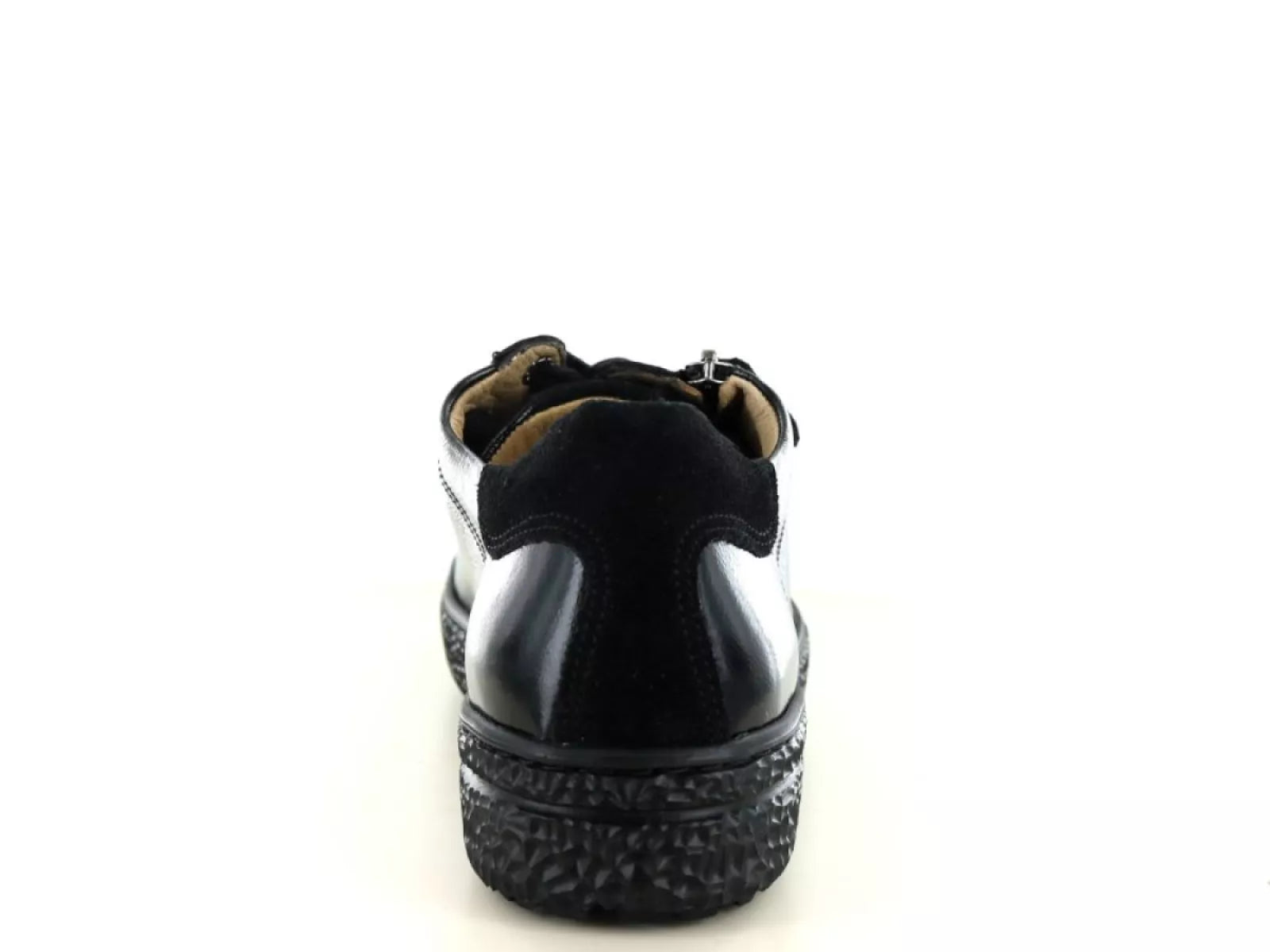 De lage veterschoen is uitgevoerd in de tijdloze kleur zwart (630101) en heeft een breedtemaat van H, wat staat voor een brede pasvorm. De combinatie van een ritssluiting en veters zorgt niet alleen voor een stevige pasvorm, maar geeft ook een modieuze uitstraling aan deze veelzijdige schoen.