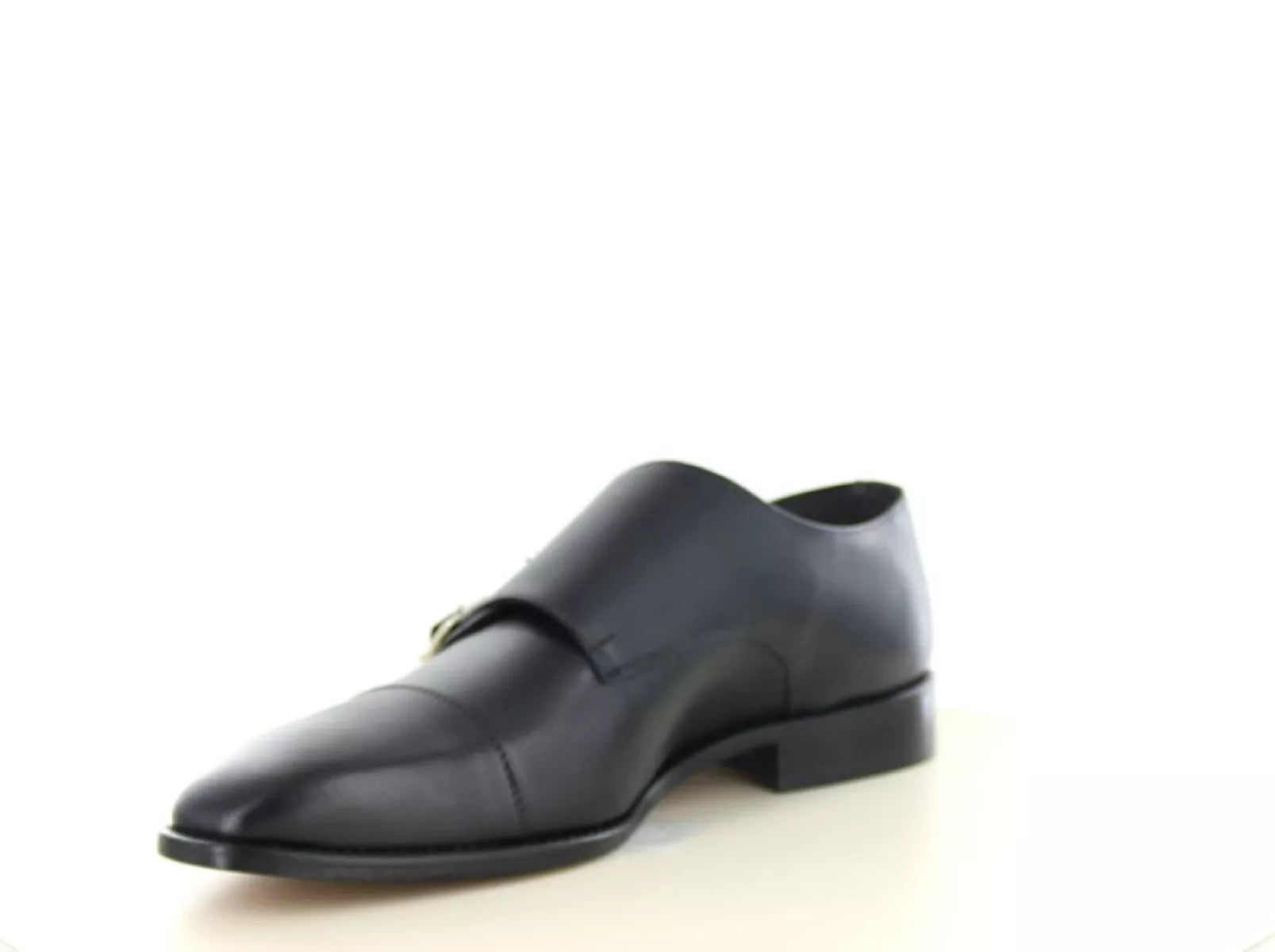 De volledig leren binnenvoering zorgt voor een ademend vermogen en draagt bij aan het algehele comfort van de schoen. De dubbele gespsluiting biedt een klassieke look en zorgt voor een stevige pasvorm. De zwarte kleur maakt deze schoen veelzijdig en geschikt voor diverse gelegenheden, van formele bijeenkomsten tot zakelijke afspraken.