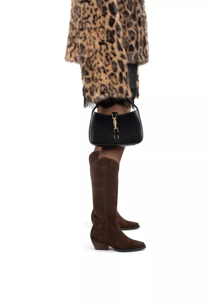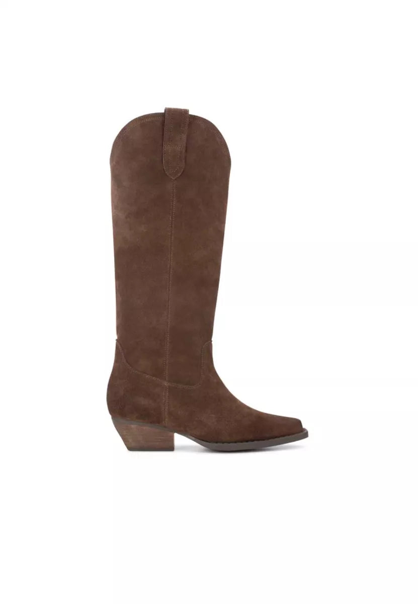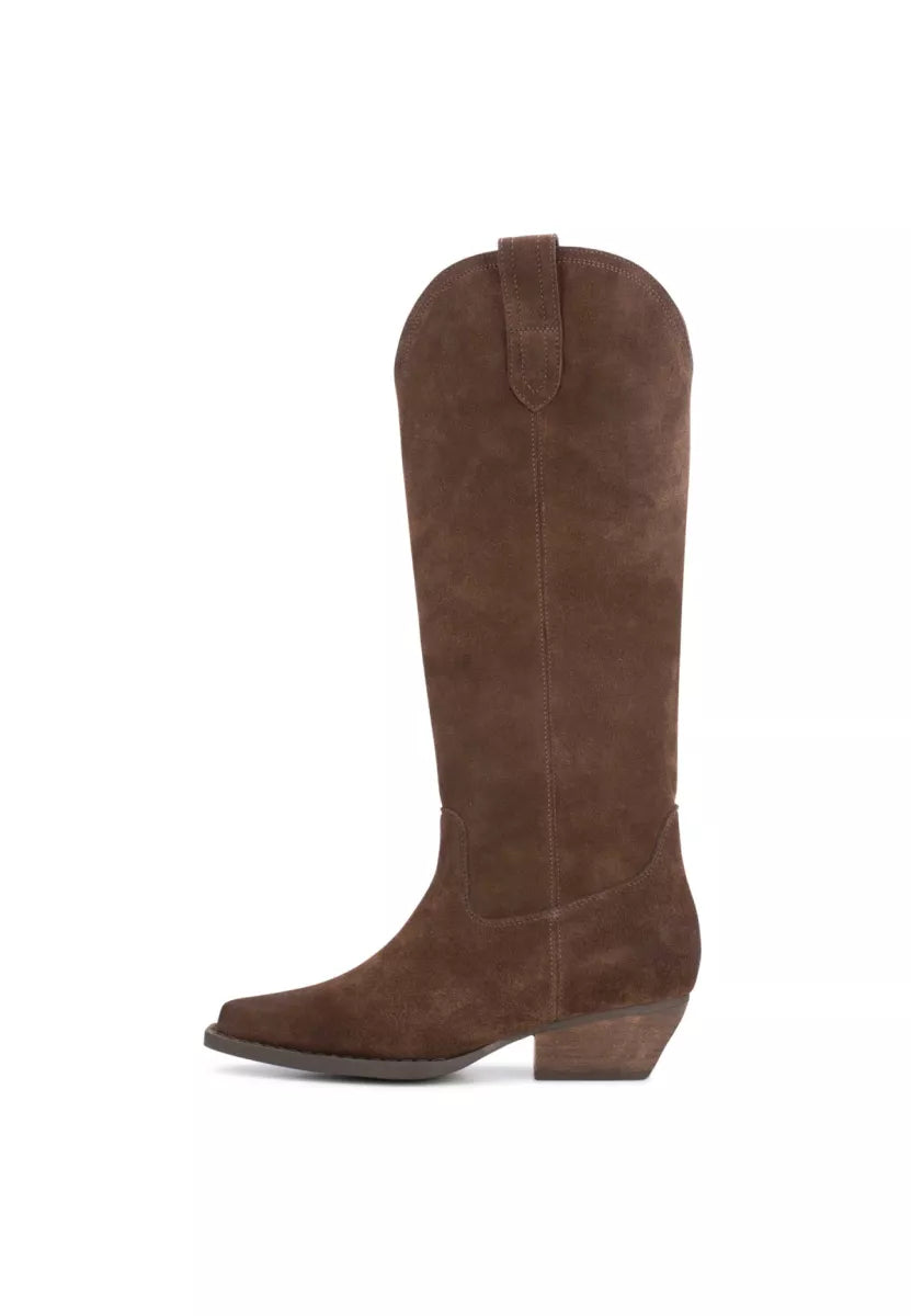 De PS Poelman CLSHN-3A231 is een modieuze hoge laars die western vibes combineert met eigentijdse elegantie. Het zachte nubuck in een warme cappuccinotint geeft de laars een luxe uitstraling, terwijl de spitse neus en decoratieve stiknaden zorgen voor een stoere, authentieke cowboylook.