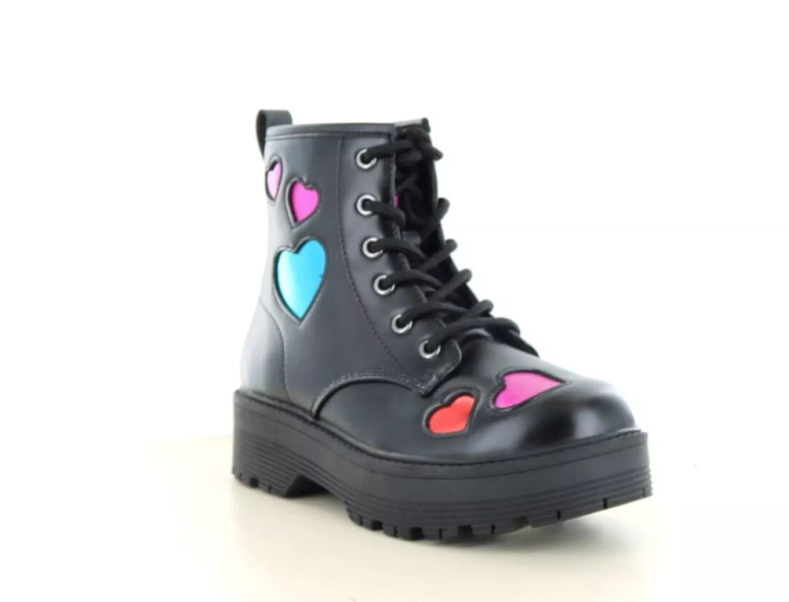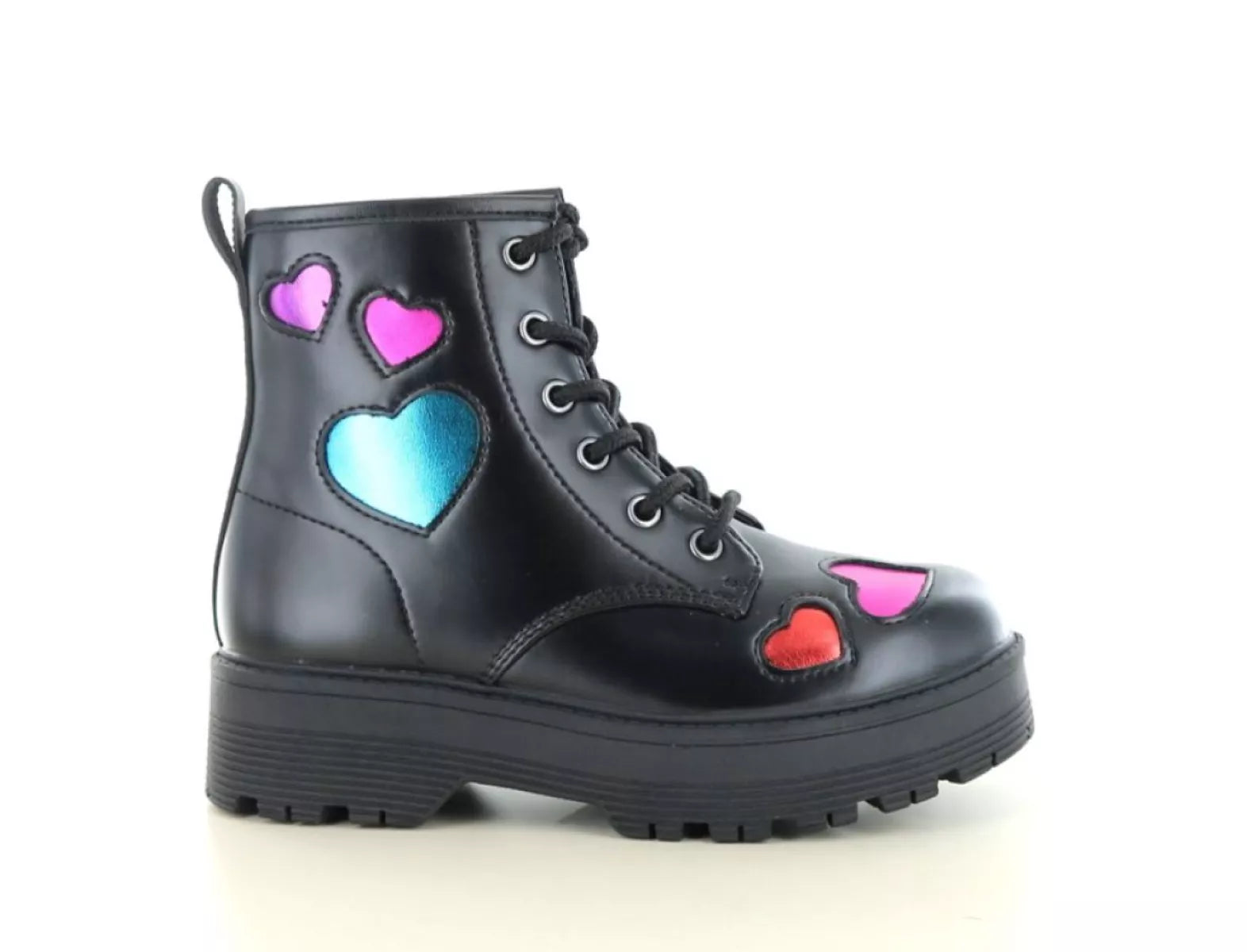 - Trendy zwart met vrolijke metallic hartjes in roze, rood en blauw
