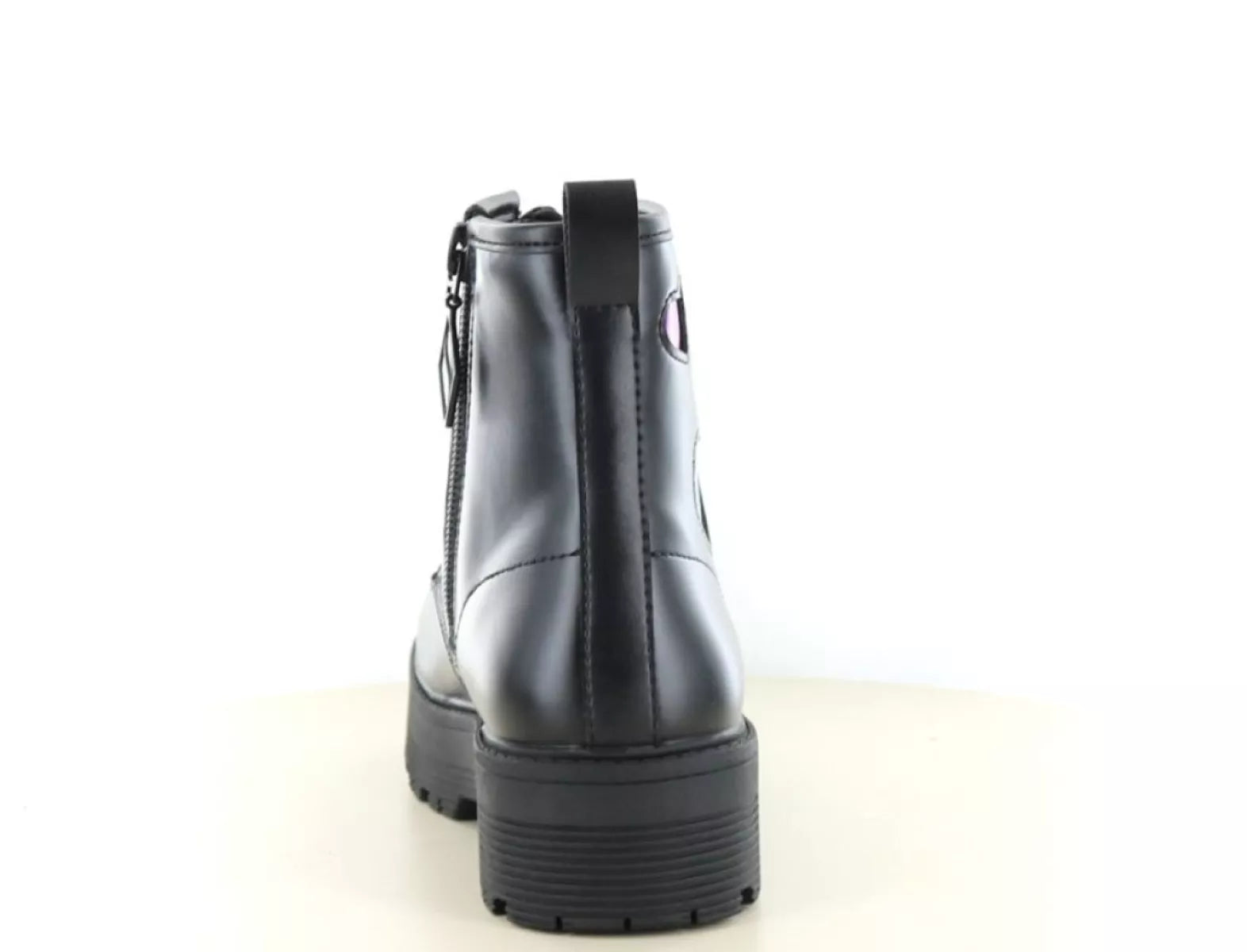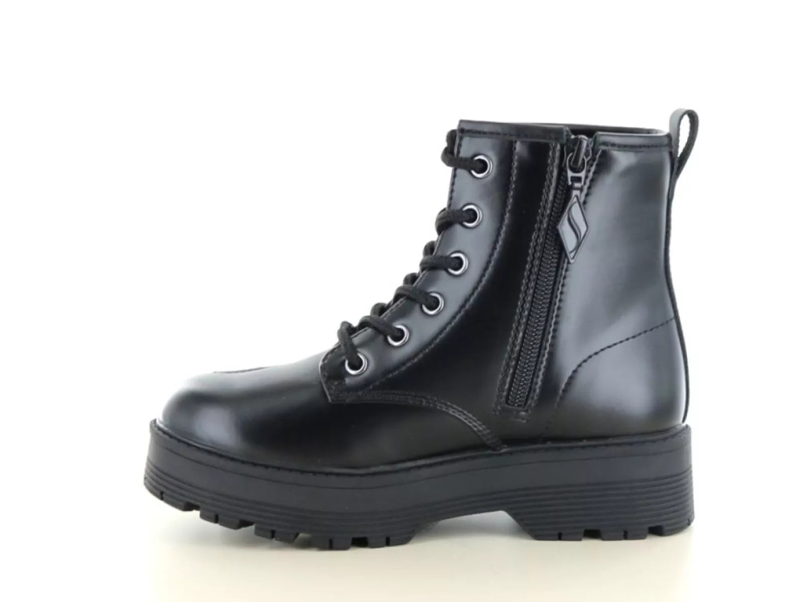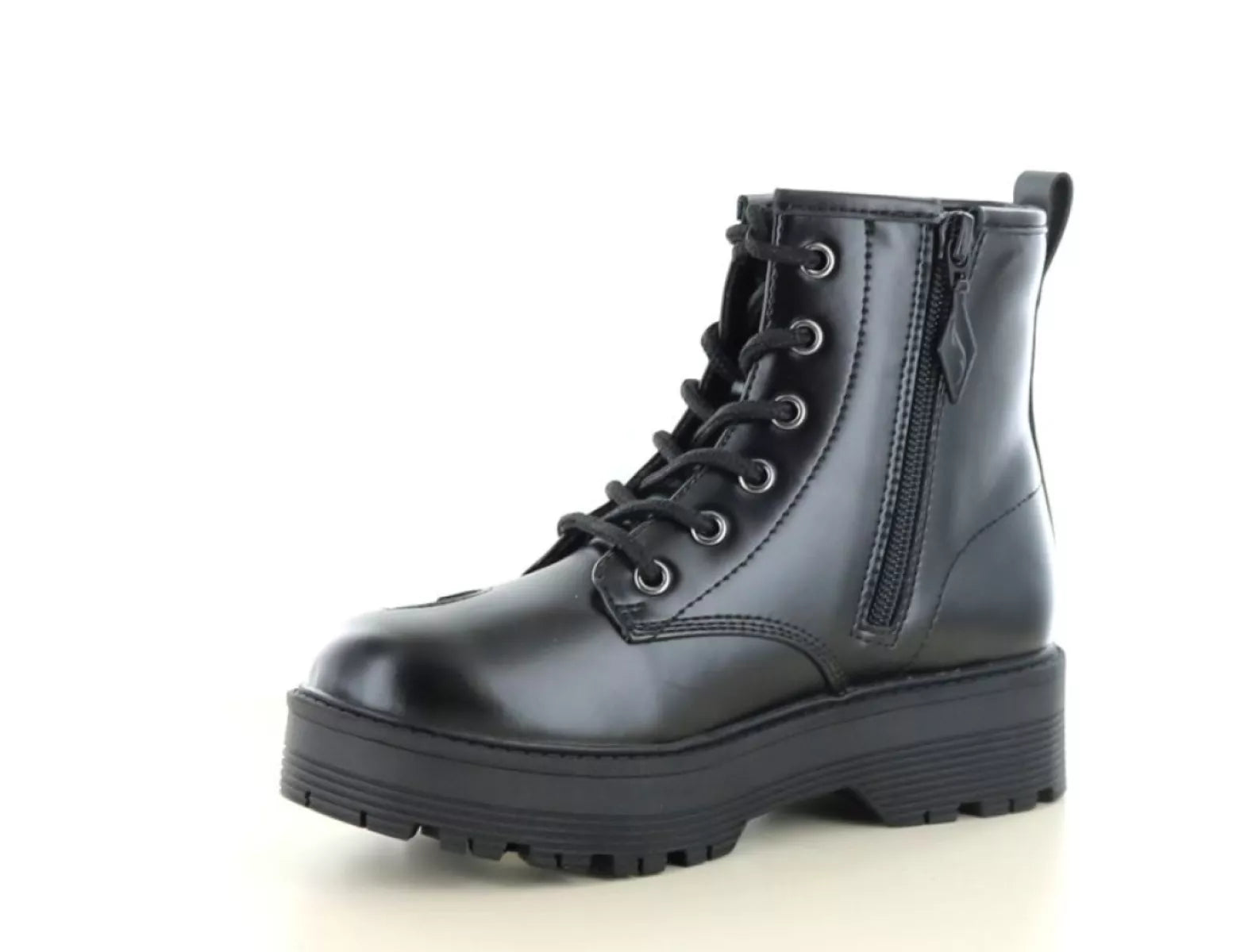 De halfhoge veterboot is gemaakt van stevig synthetisch materiaal en biedt veel stabiliteit. Dankzij de combinatie van vetersluiting en rits trek je de schoenen snel aan en uit, terwijl ze toch stevig om de voet blijven zitten. De stevige profielzool zorgt bovendien voor grip en duurzaamheid, ideaal voor schooldagen, buitenspelen of een dagje uit.