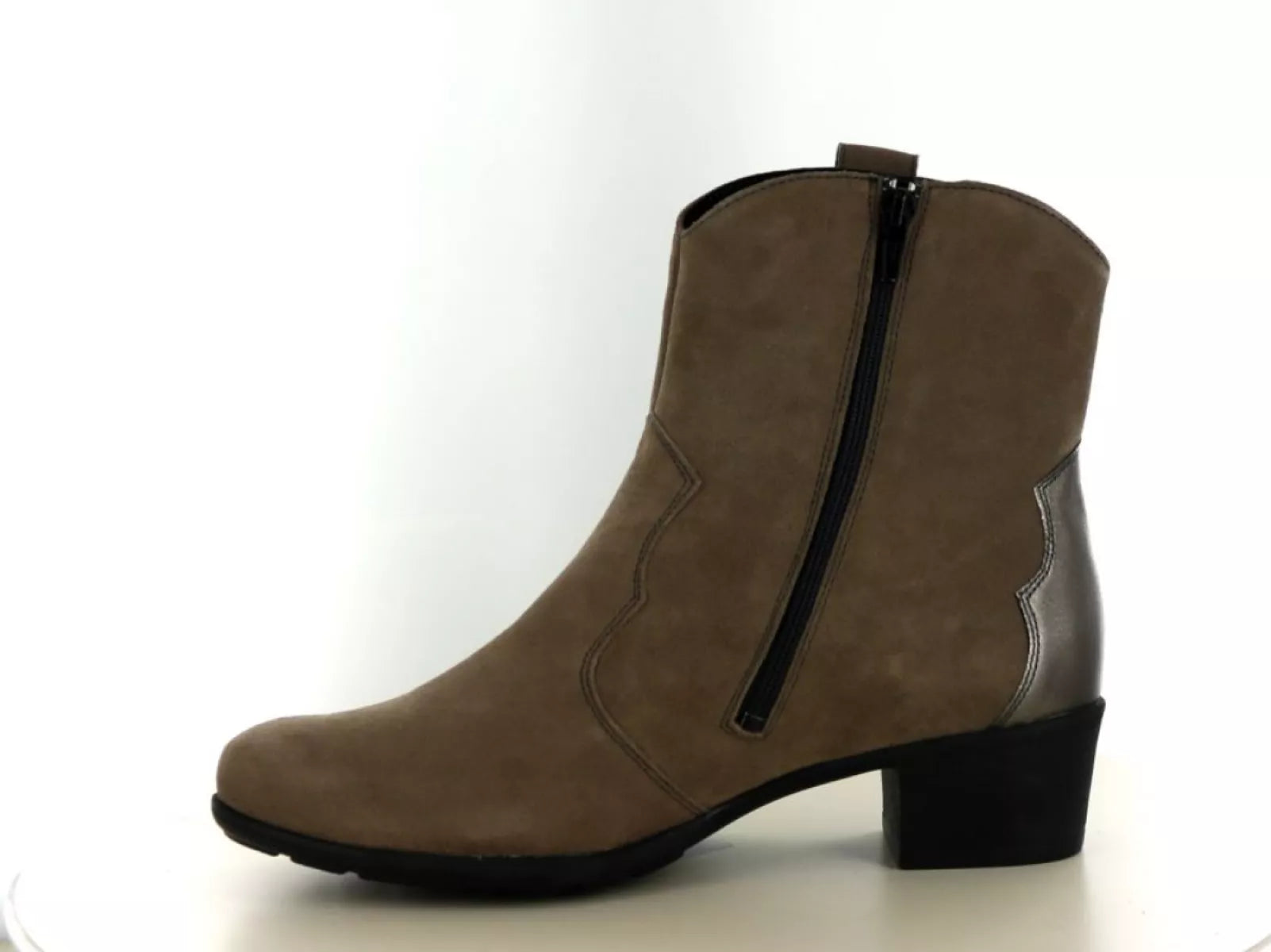 De Solidus 35026 enkellaars is de perfecte combinatie van stijl en comfort voor dames. Gemaakt van hoogwaardig suède in een elegante taupe kleur, voegt deze enkellaars een verfijnde touch toe aan elke outfit. De handige ritssluiting aan de zijkant zorgt voor een moeiteloze instap en een stevige pasvorm.