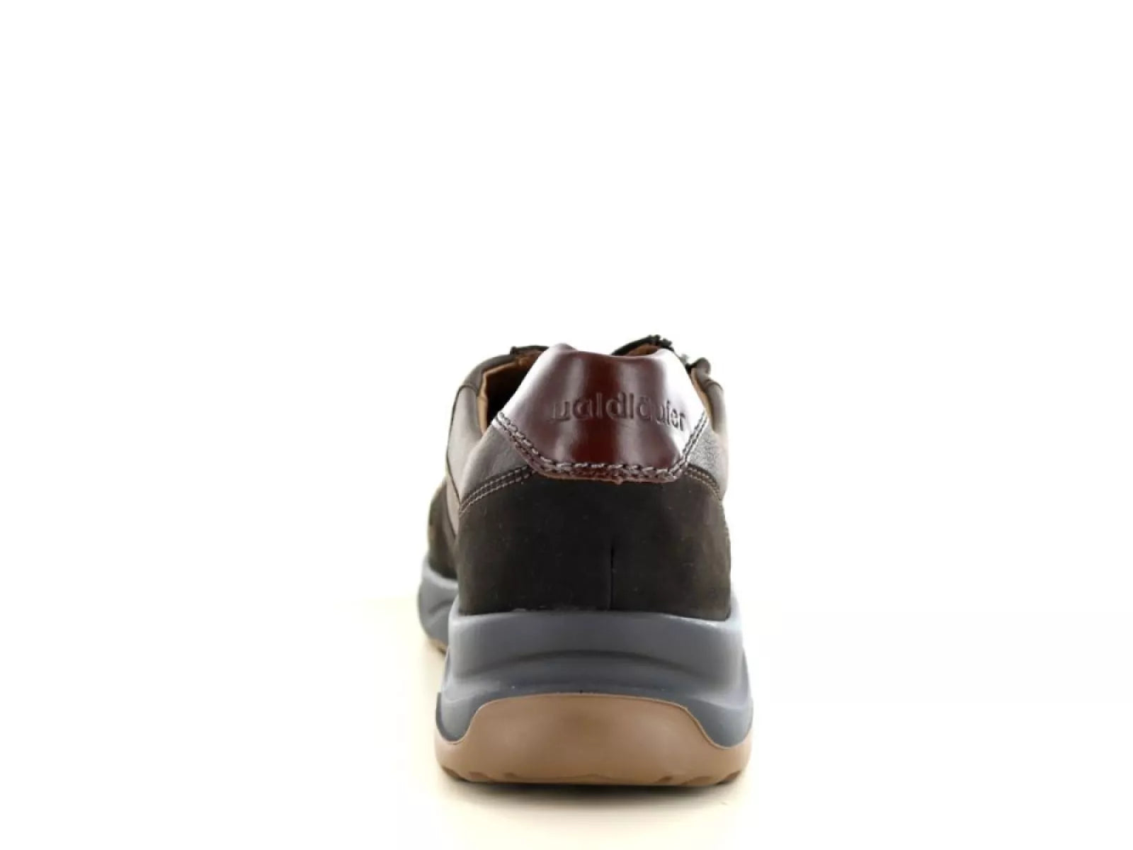 De 718006 wijdte H van Waldlaufer is een mooie veterschoen gemaakt van leer en suede, voor heren. Deze schoen heeft een verwisselbaar voetbed en is geschikt voor steunzolen. Deze veterschoen is uitgevoerd in de kleur 305 355 donkerbruin en is gemaakt op wijdte H. De sluiting is door middel van een rits en een veter.