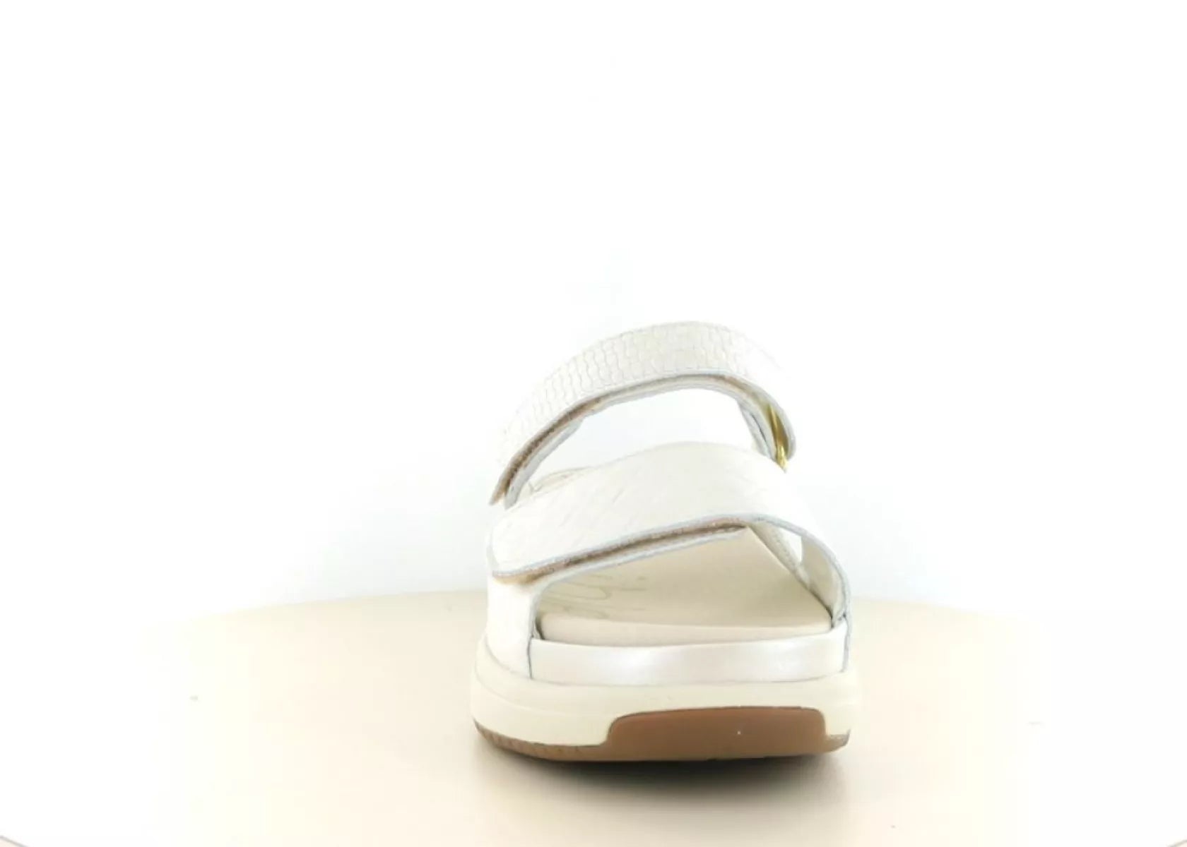 Het bovenwerk is uitgevoerd in soepel leer met een subtiele print en een lichte glans. De neutrale Soft Pearl kleur laat zich gemakkelijk combineren met zowel een zomerse jurk als een luchtige broek. De stevige, lichtgewicht zool zorgt voor stabiliteit en grip, terwijl het design modern en vrouwelijk blijft.