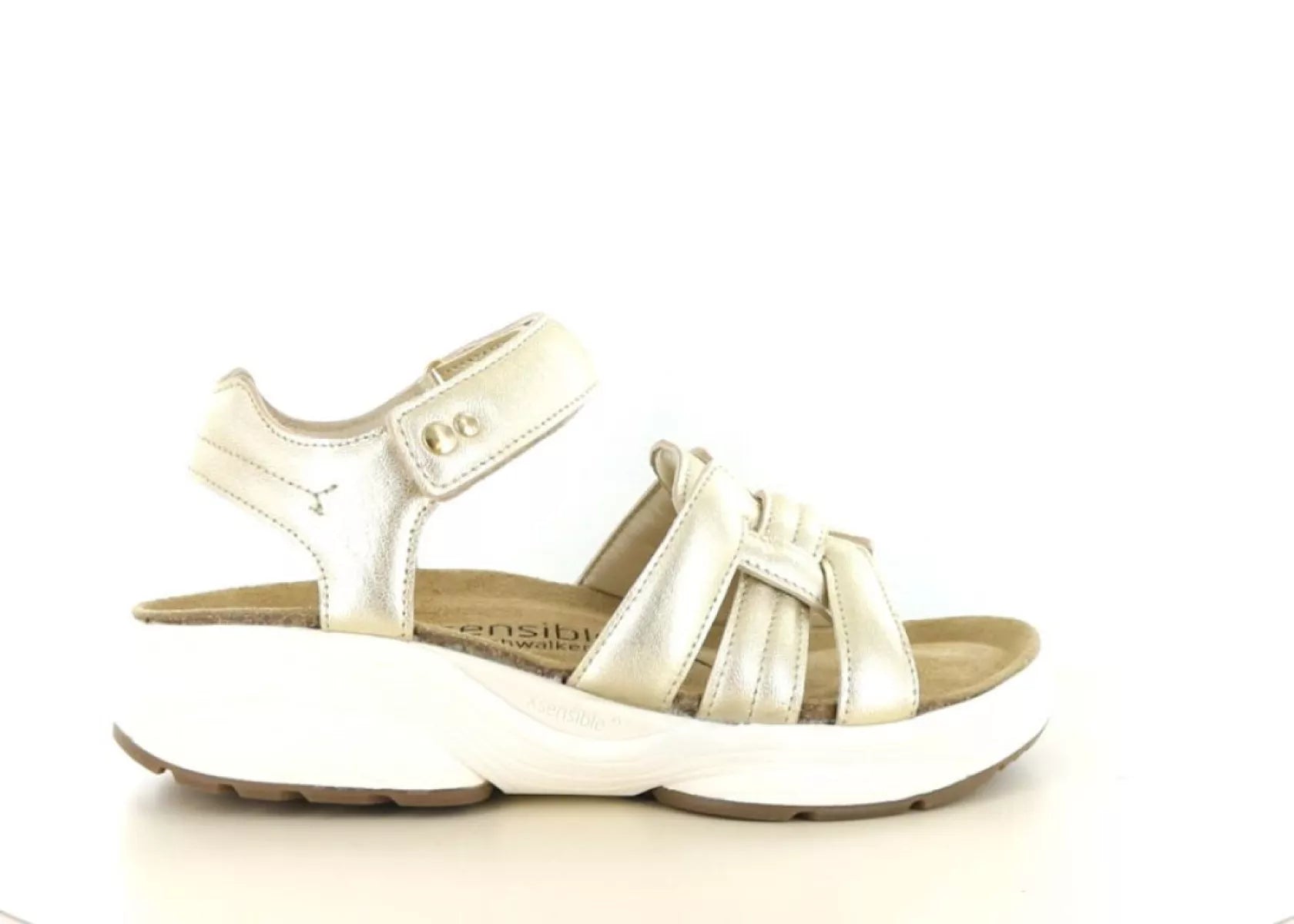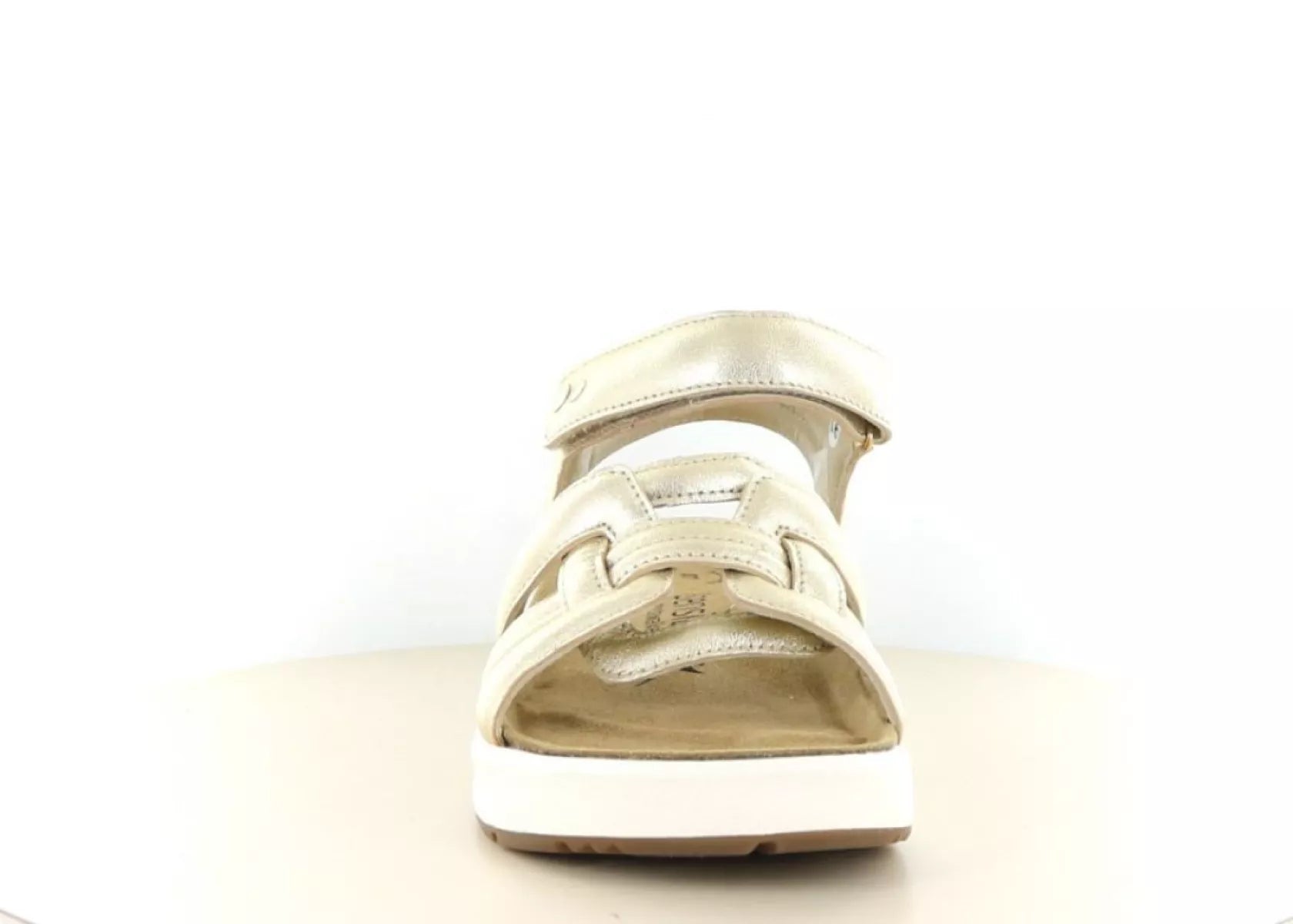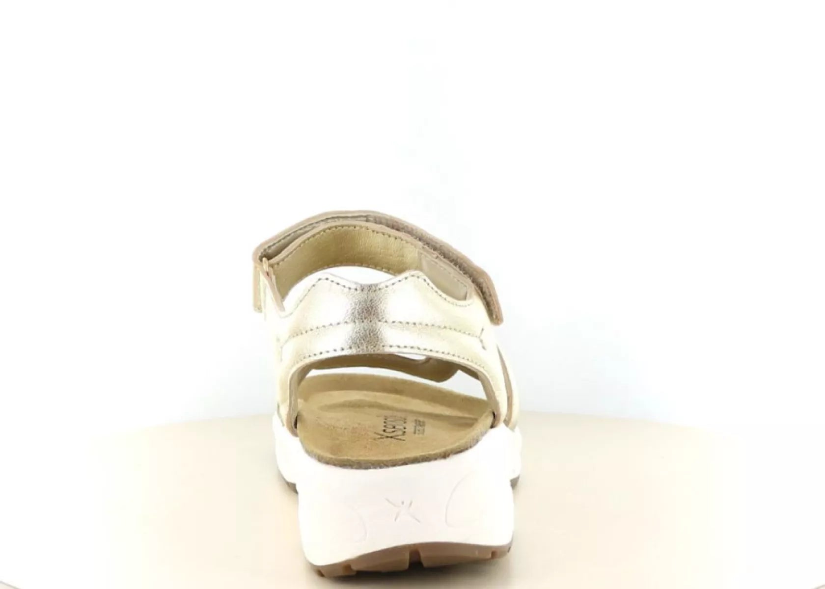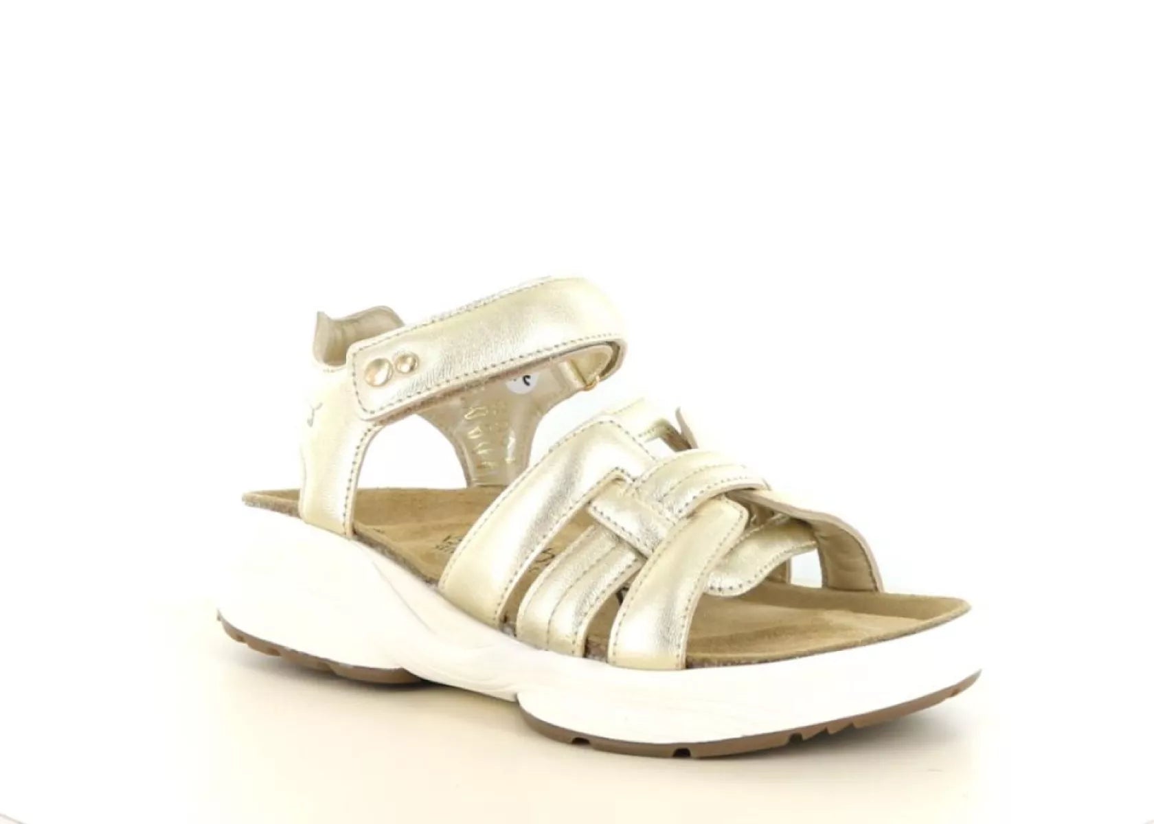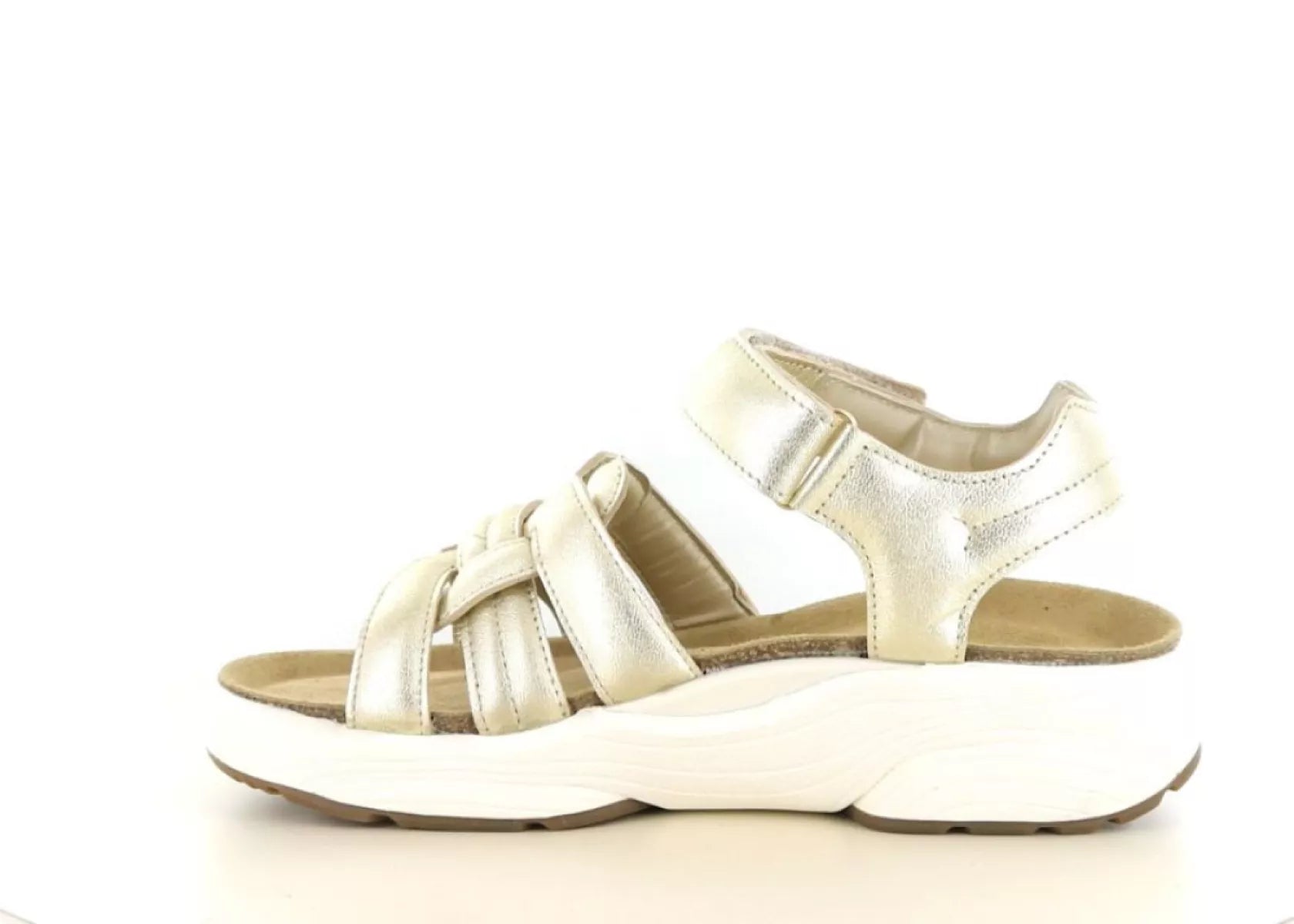 De Xsensible Stretchwalker 30804.5 Magnolia in de kleur 911 Gold is een elegante en sportieve damessandaal die comfort en stijl perfect combineert. Het metallic goudkleurige leer geeft deze sandaal een luxe uitstraling, terwijl de stevige, lichtgewicht zool zorgt voor optimale ondersteuning tijdens iedere stap. Een ideale keuze voor wie op zoek is naar comfort sandalen voor dames met een brede pasvorm.
