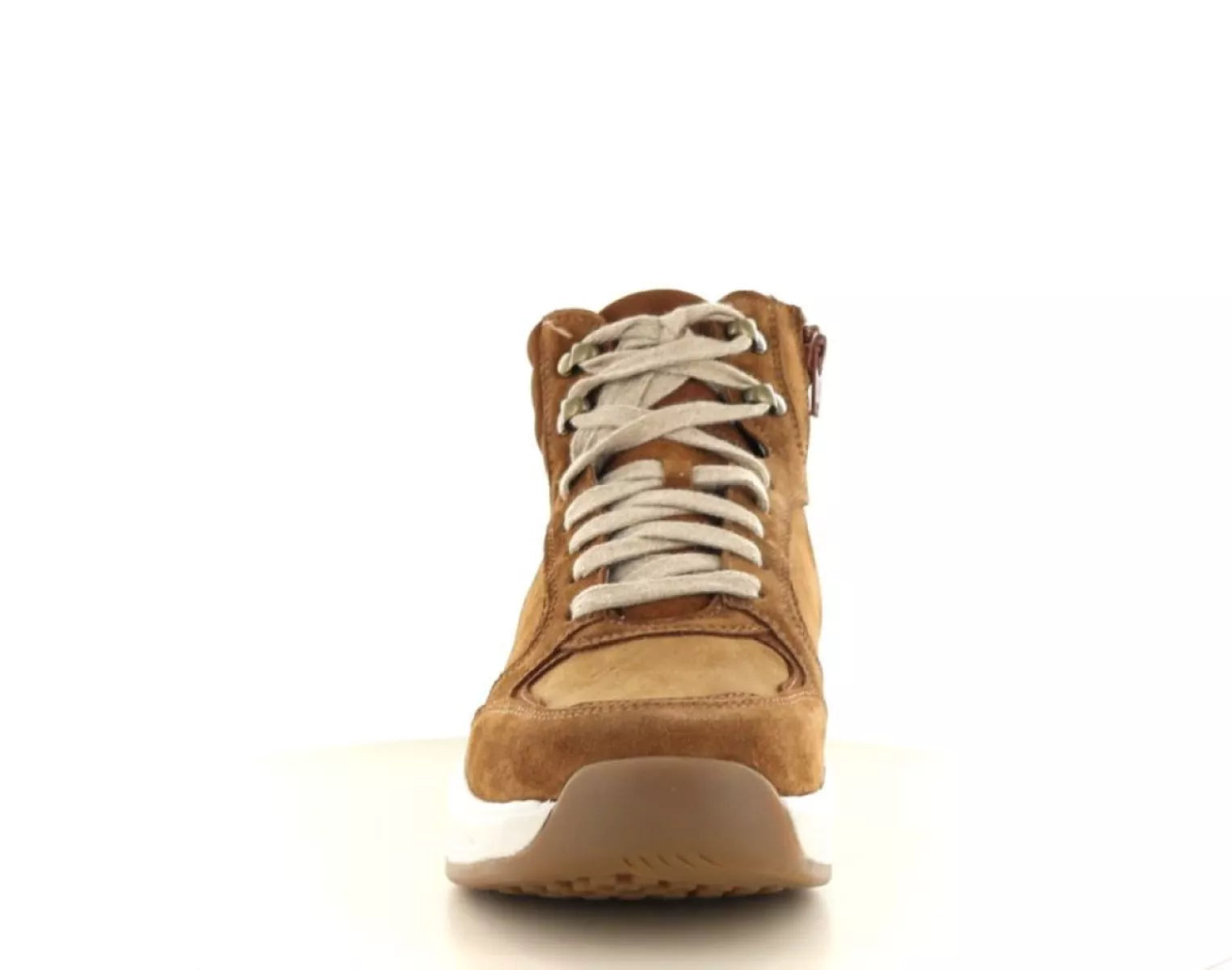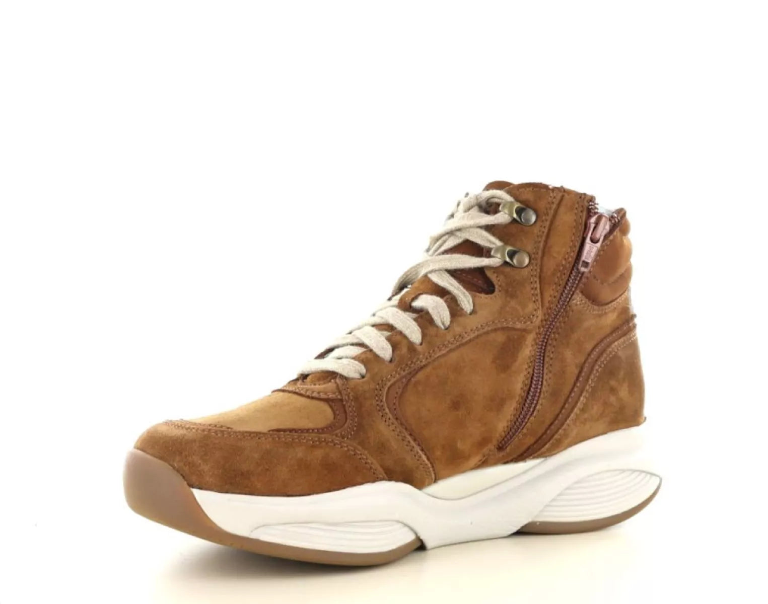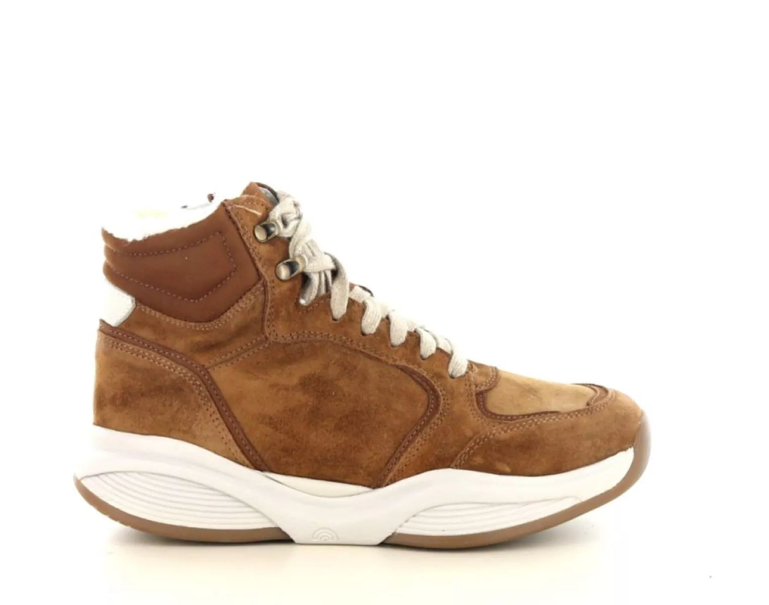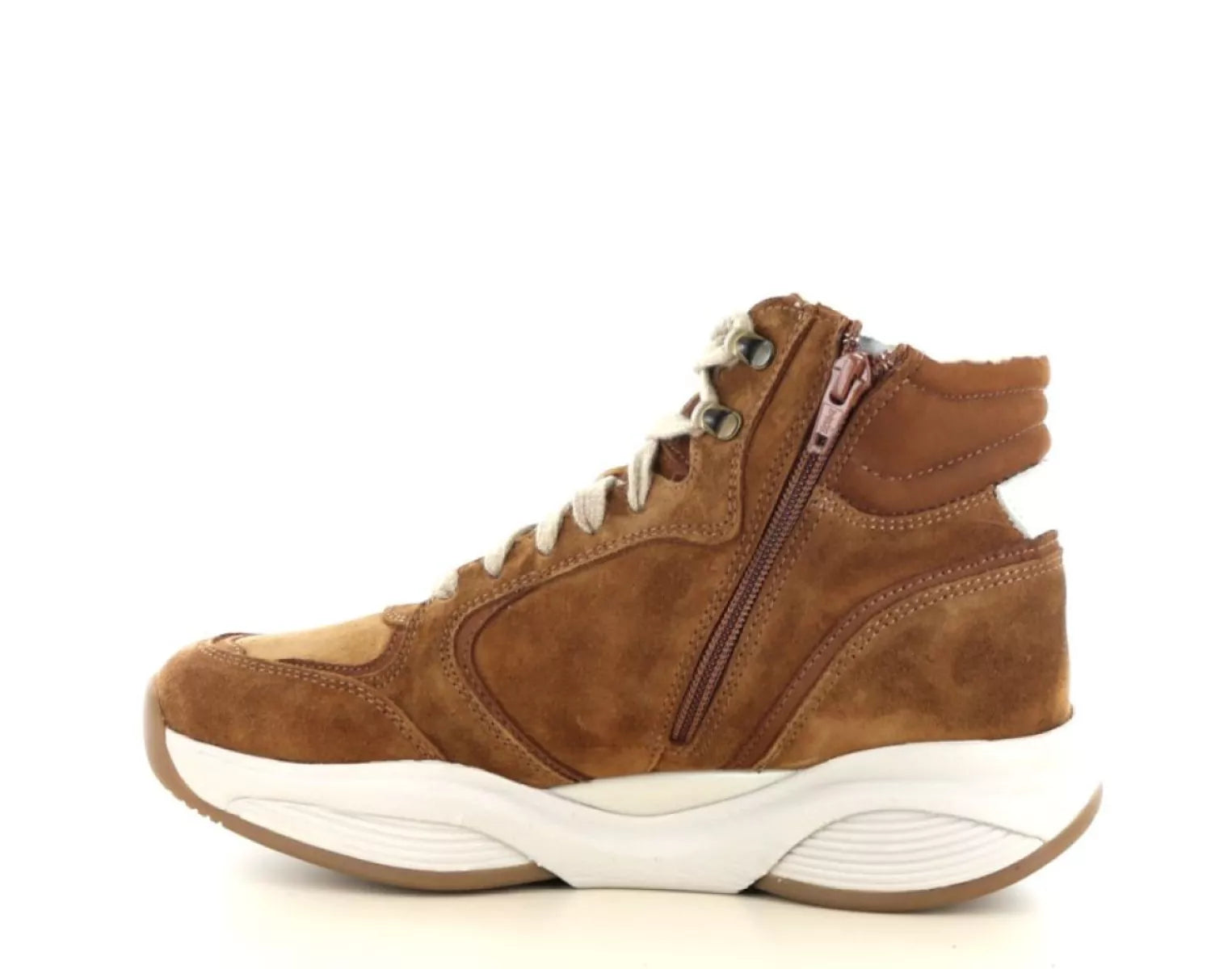 - Halfhoge damessneaker van suède in warme cognac kleur
