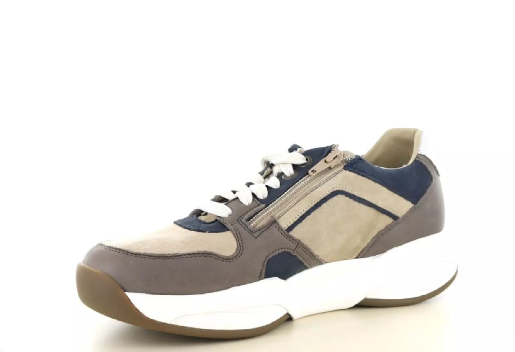 Het bovenwerk is vervaardigd van zacht en soepel suède, wat zorgt voor een luxe look en een aangenaam draaggevoel. Dankzij de combinatie van veters en een handige ritssluiting trek je de sneaker moeiteloos aan en uit, terwijl je toch profiteert van een nauwkeurige afstelling. De wijdtemaat K biedt extra ruimte en maakt dit model uitermate geschikt voor heren met zeer brede voeten.