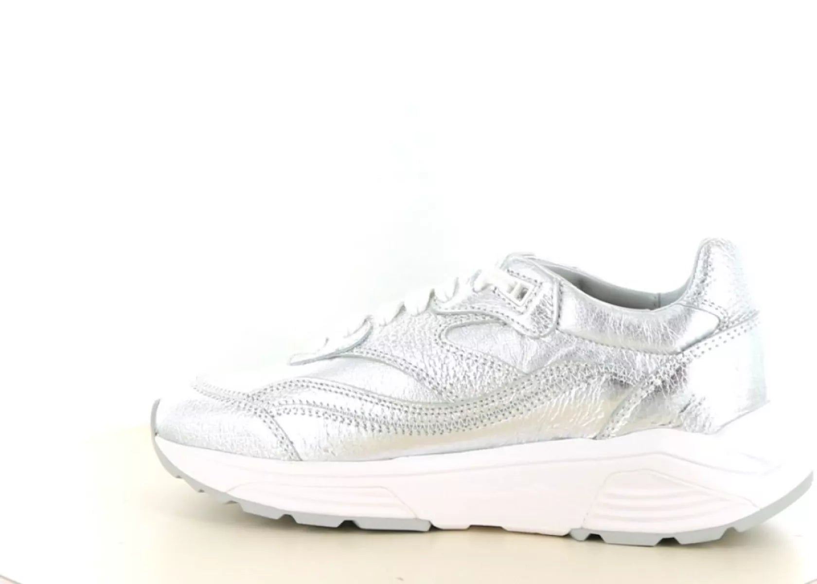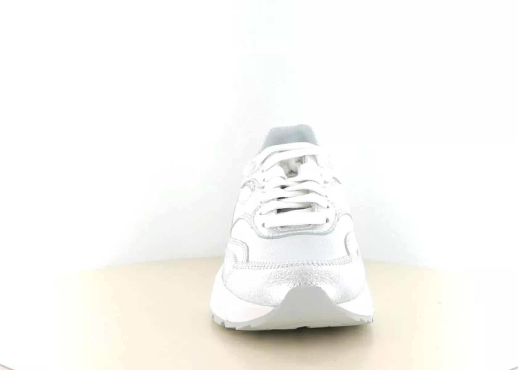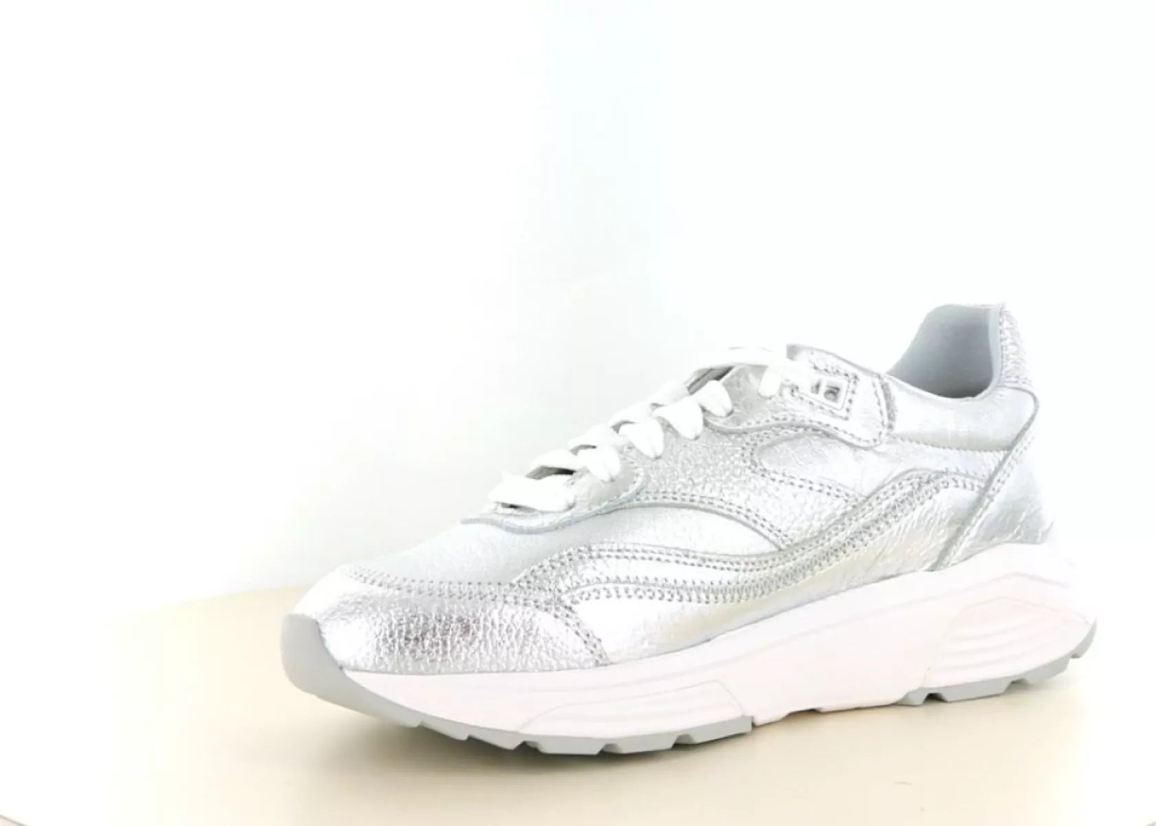 Het bovenwerk is uitgevoerd in soepel leer in zilver metallic, wat niet alleen zorgt voor een trendy uitstraling, maar ook duurzaam en comfortabel is. De subtiele belijningen en sportieve zool geven de sneaker een moderne look die perfect past bij zowel een casual outfit als een sportief-chique stijl.