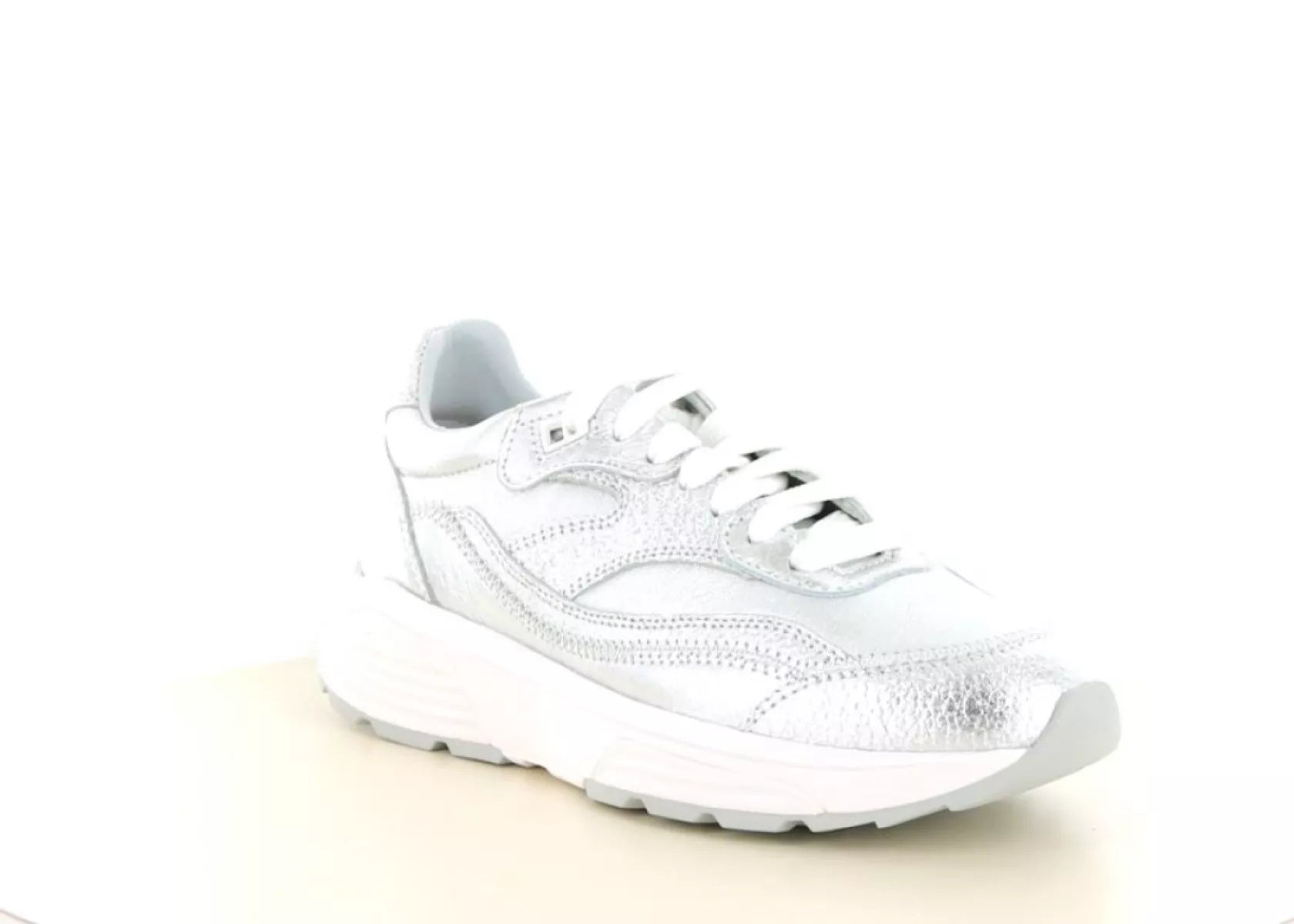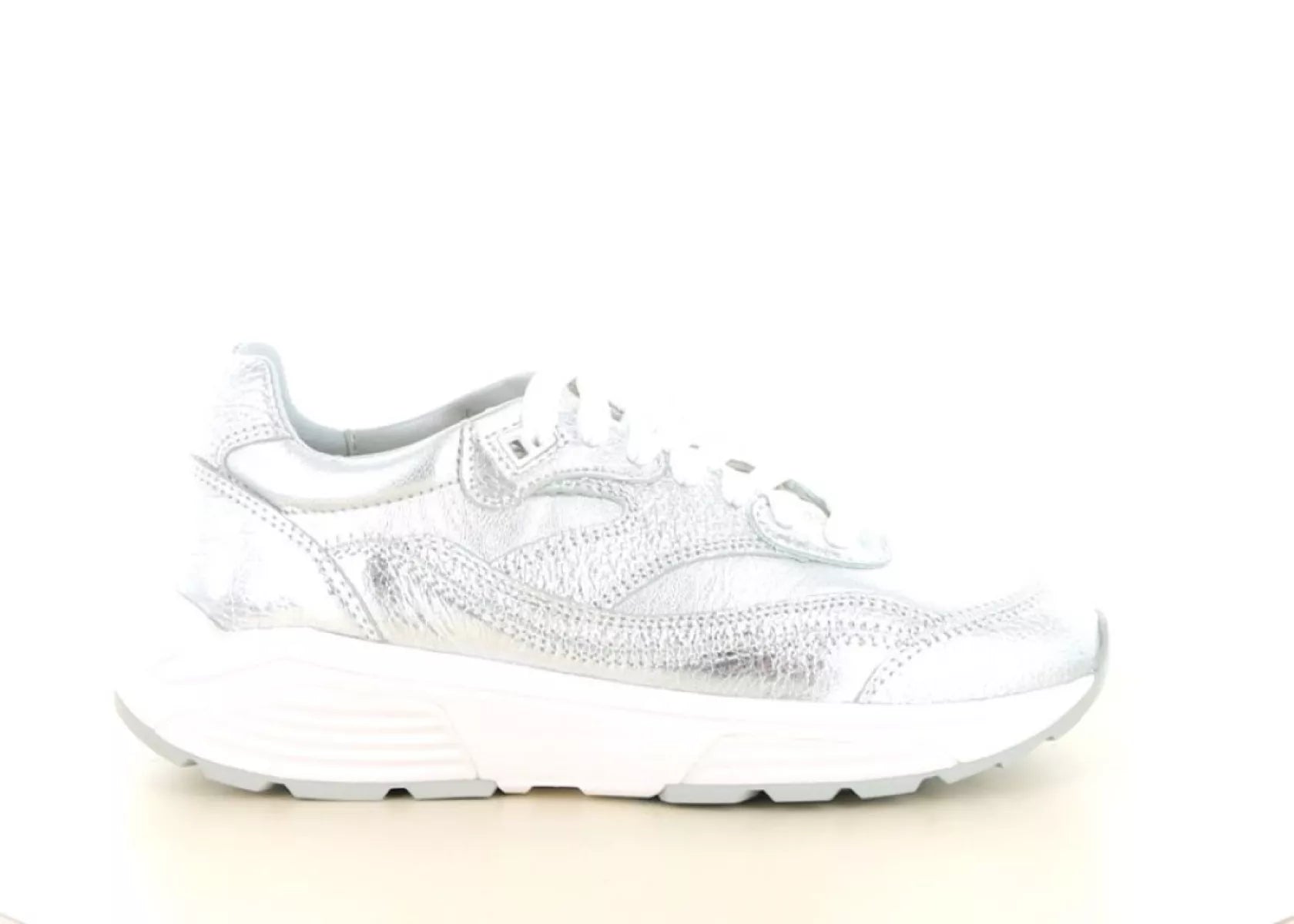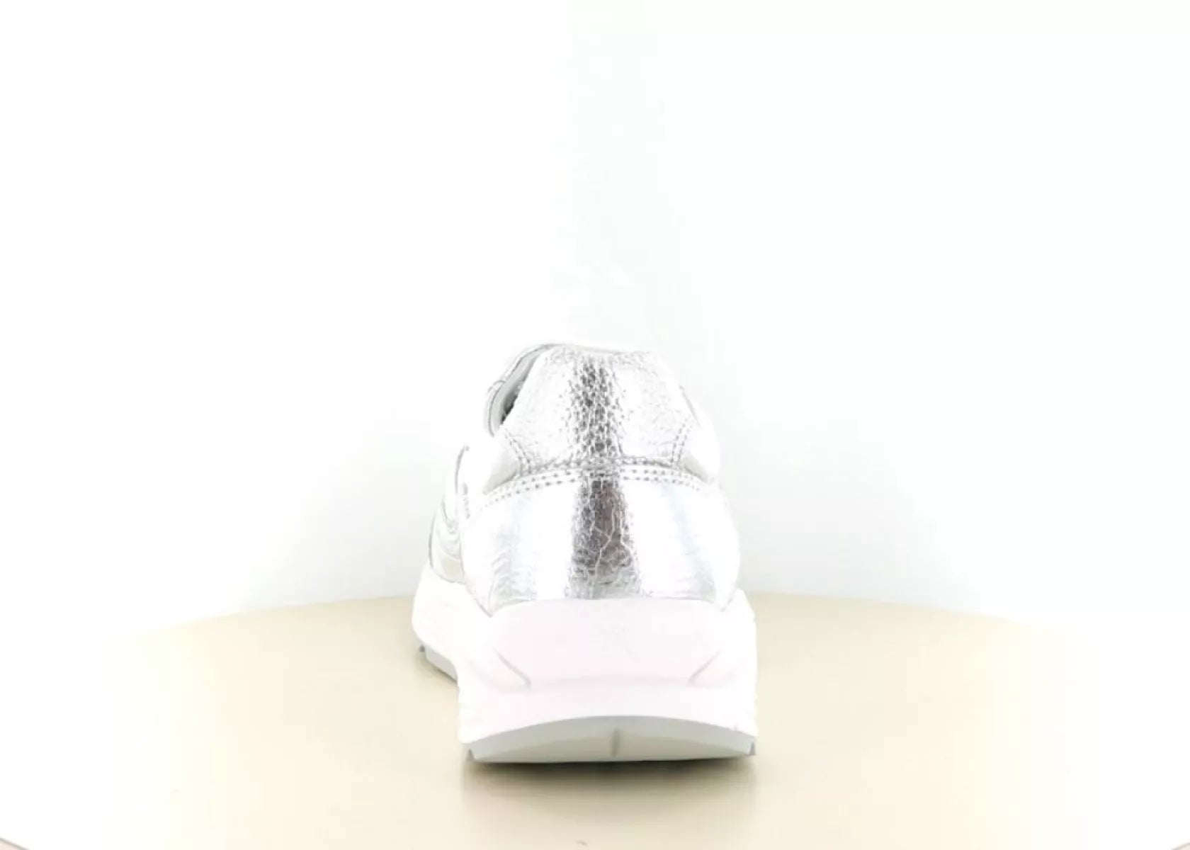 Het bovenwerk is uitgevoerd in soepel leer in zilver metallic, wat niet alleen zorgt voor een trendy uitstraling, maar ook duurzaam en comfortabel is. De subtiele belijningen en sportieve zool geven de sneaker een moderne look die perfect past bij zowel een casual outfit als een sportief-chique stijl.